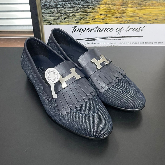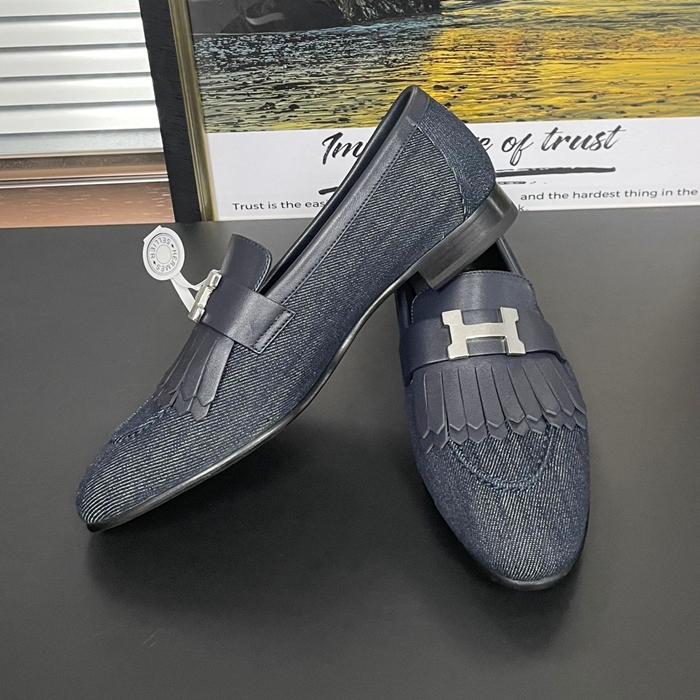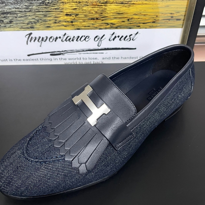 エルメス レディース ネイビーロイヤルローファー -   Navy- he152x