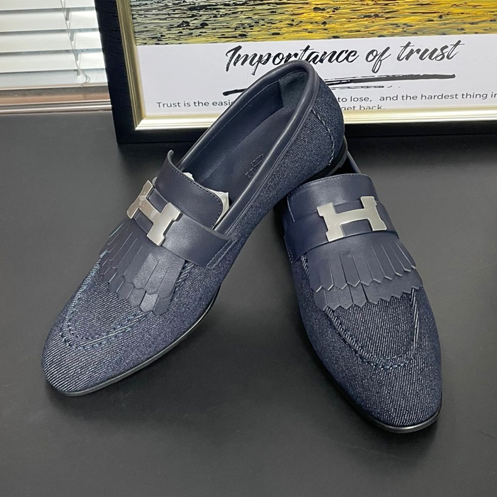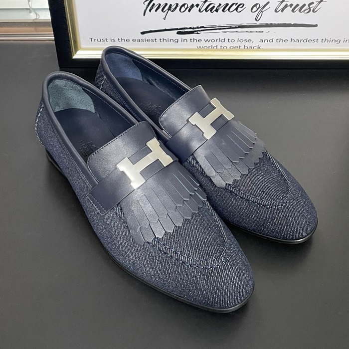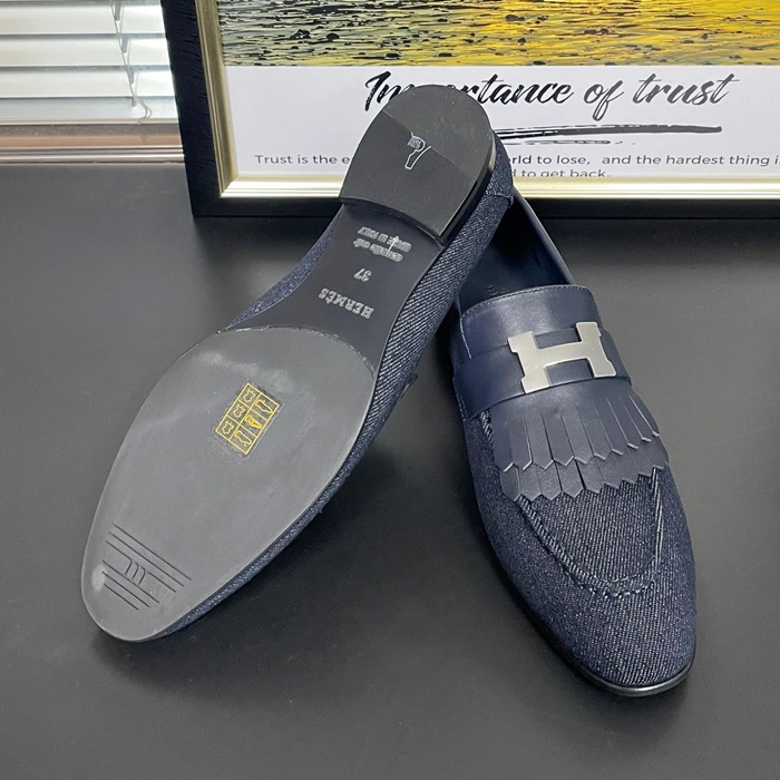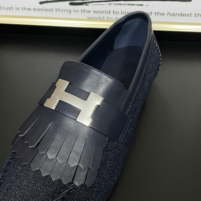 エルメス レディース ネイビーロイヤルローファー -   Navy- he152x