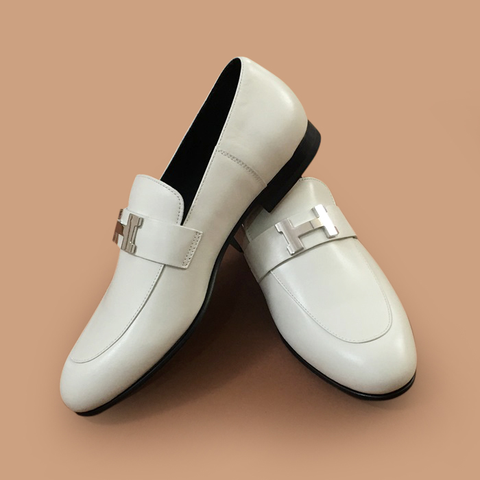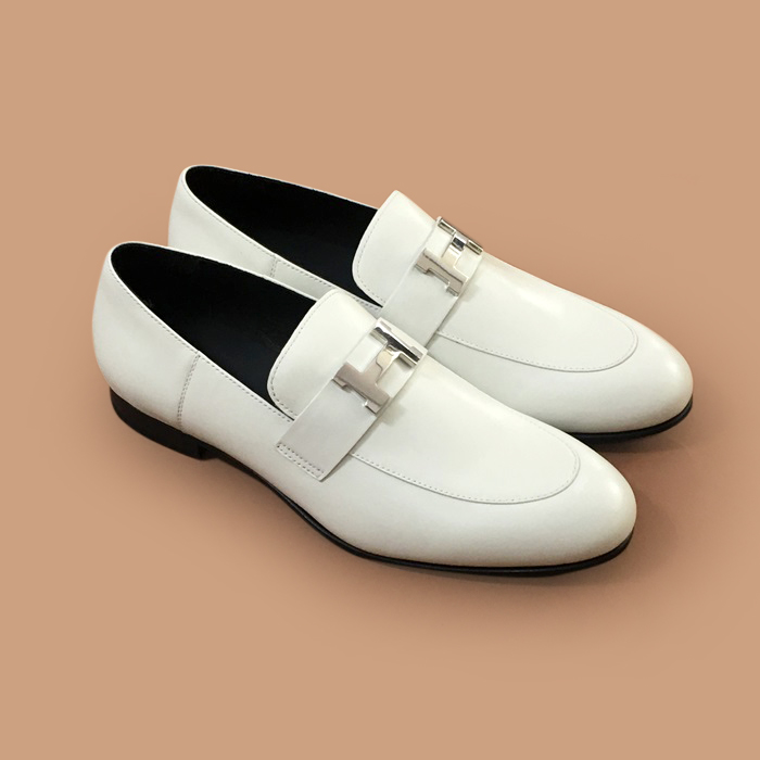 HERS0527 - エルメスメンズ レザーローファーホワイト