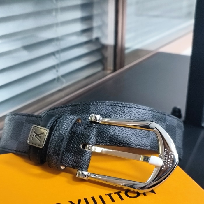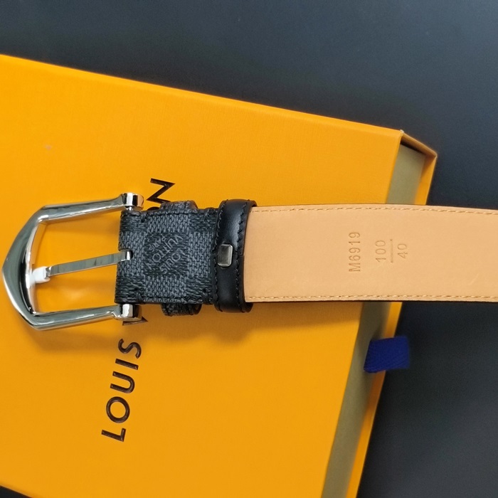 Damier Buckle - ルイヴィトン メンズ ダミエクラシック バックルレザーベルト Lou0872x.ブラックシルバー