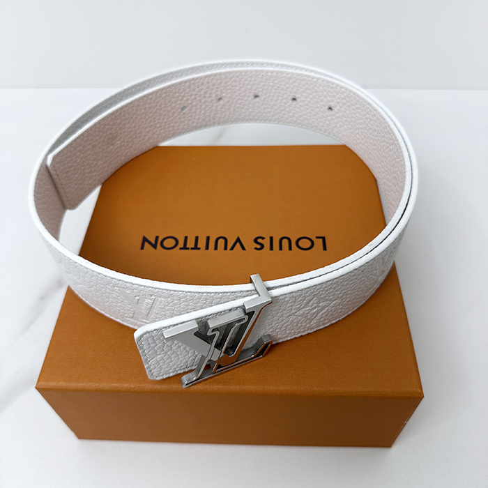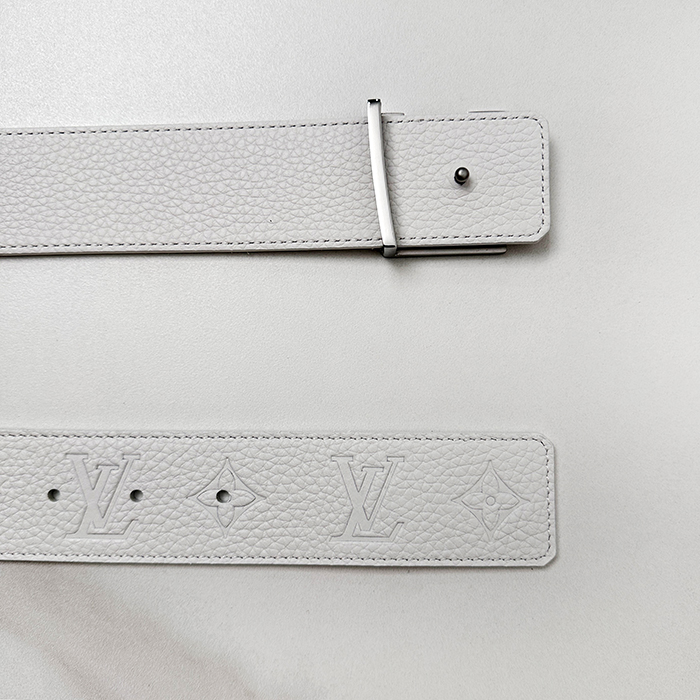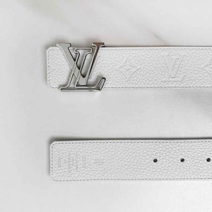 Initial Buckle - ルイヴィトンメンズ イニシャル LOGO バックルレザーベルト LOUBT0002.Size(4.0cm).ホワイト/ホワイトシルバー