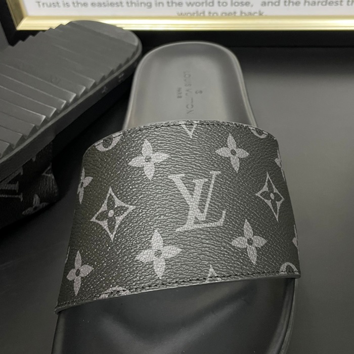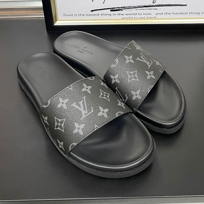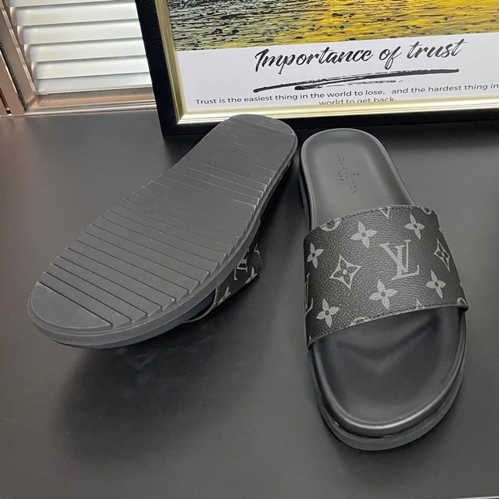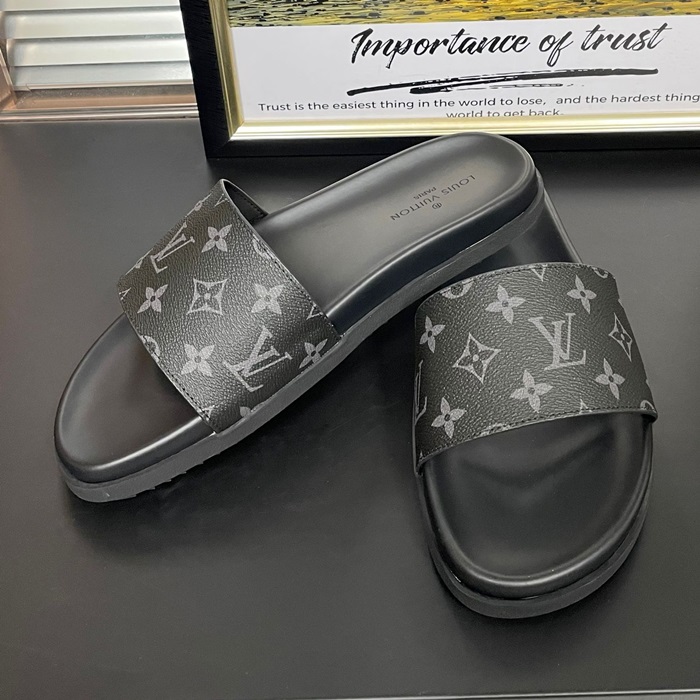 Initial Slipper - ルイヴィトン メンズ イニシャル LOGOレザースリッパ Lou01059x.ブラック