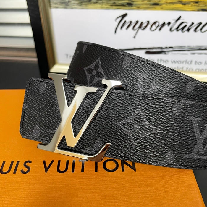 Signature Initial Buckle - ルイヴィトン メンズ シグネチャー イニシャル LOGO バックルレザーベルト Lou0869x.Size(3.8cm).2(ブラックシルバー/ブラック)