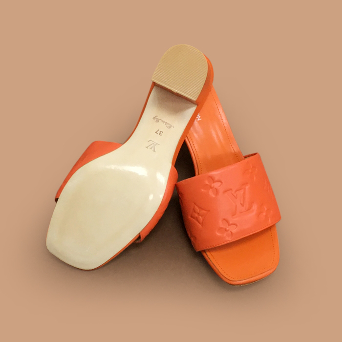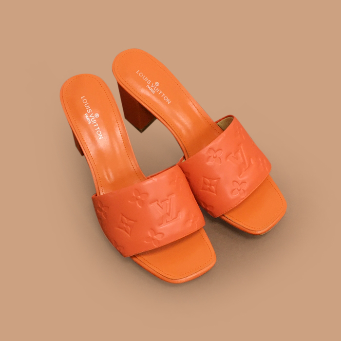 High Heel Slipper - ルイヴィトンレディースレザーハイヒール スリッパ LOUS1841,オレンジ