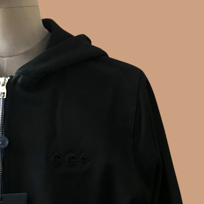 ルイヴィトン メンズ ブラック ジップアップ フーディーTシャツ -