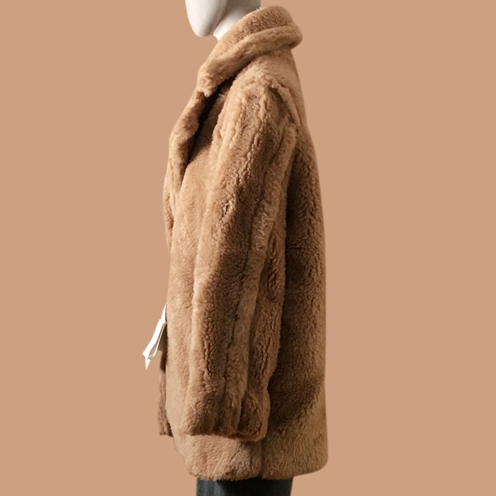 レディース カジュアル羊毛ジャケット (ブラウン)