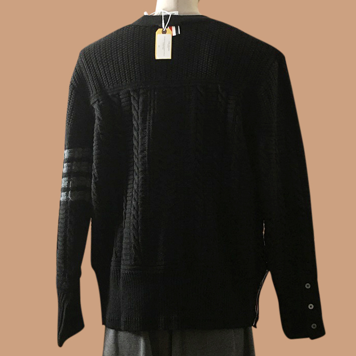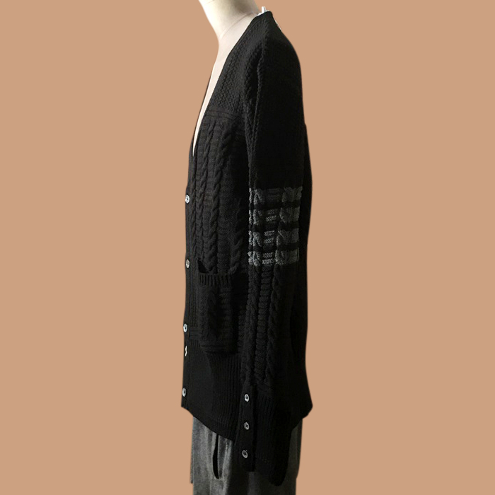 トムブラウン メンズ Vネック ブラック カーディガン -