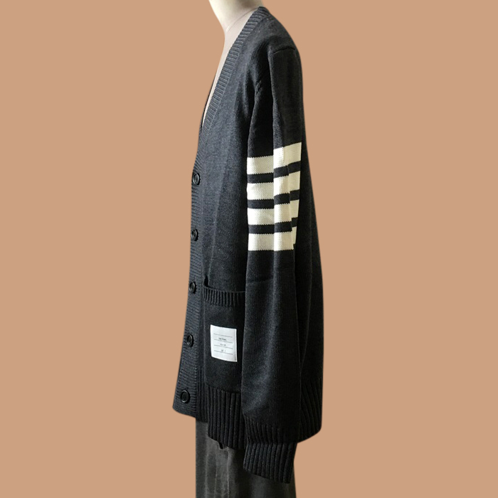 トムブラウン メンズ Vネック ブラック カーディガン -