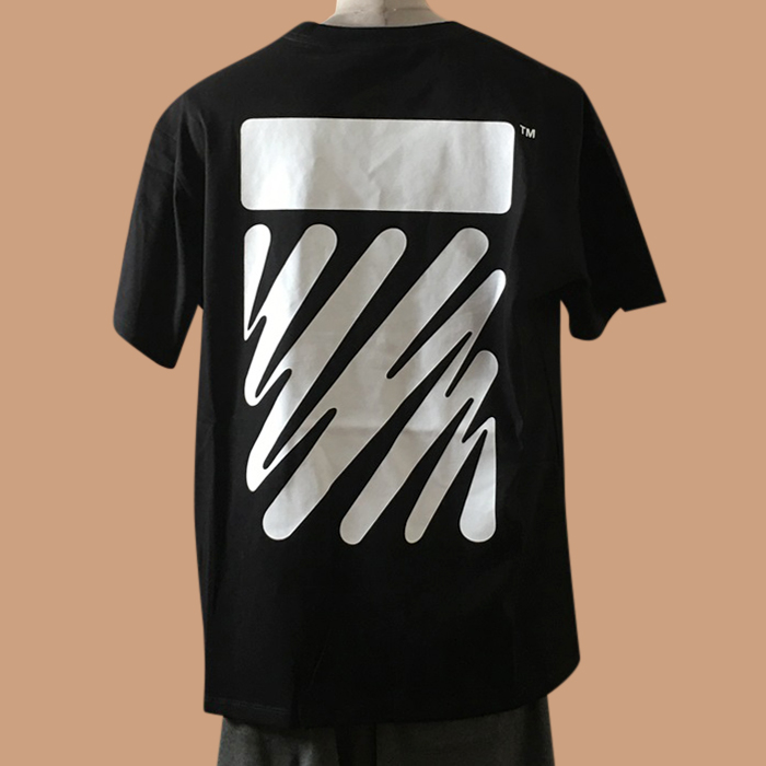 オフホワイト メンズ モダン ブラック 半袖Tシャツ -
