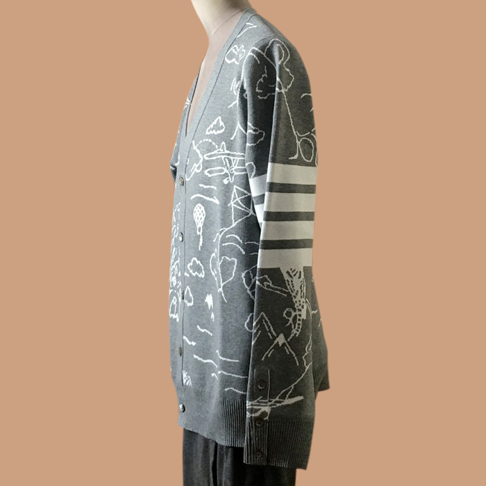 トムブラウン メンズ Vネック グレー カーディガン - Gray - thom0602x