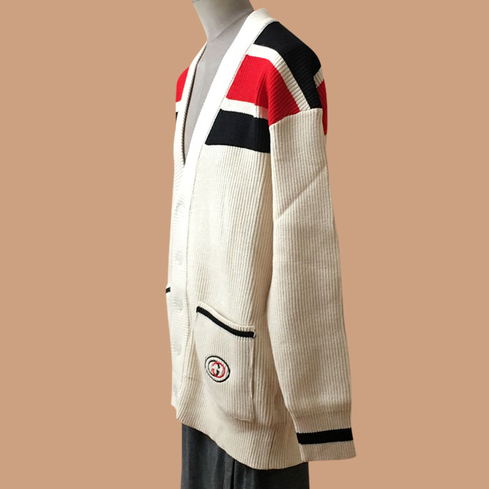 グッチ メンズ Vネック アイボリー カーディガン - Ivory  - guc05122x