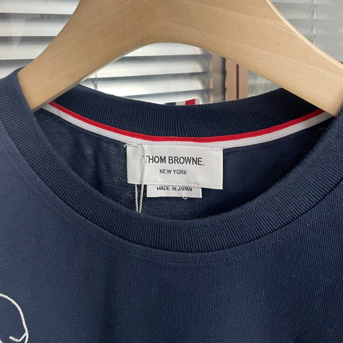 トムブラウン メンズ ネイビー クルーネック 半袖Tシャツ - - thom0611x
