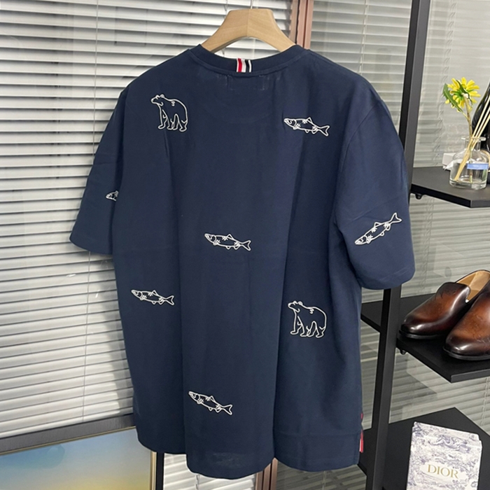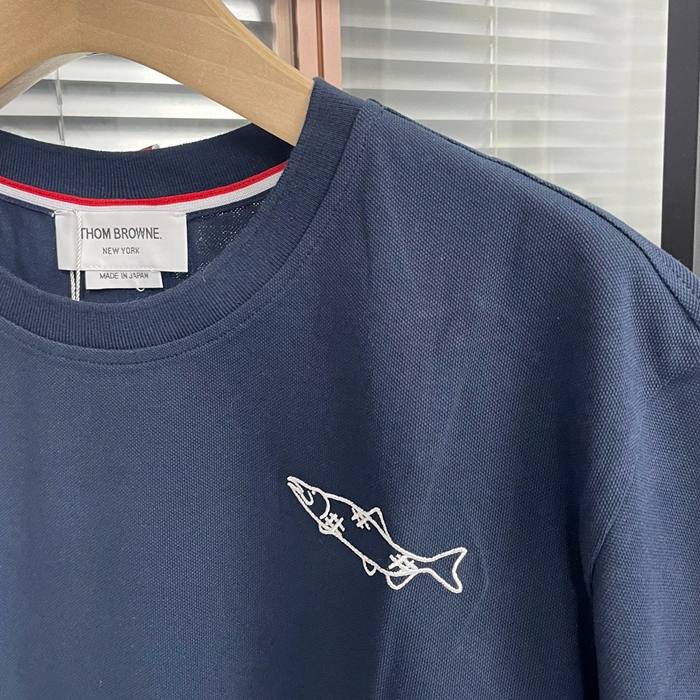 トムブラウン メンズ ネイビー クルーネック 半袖Tシャツ -  - thom0611x