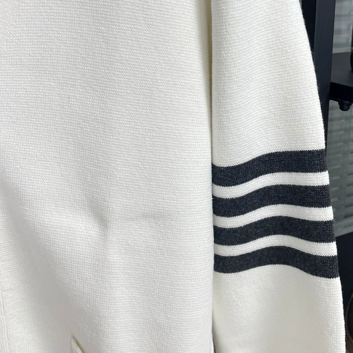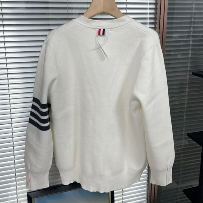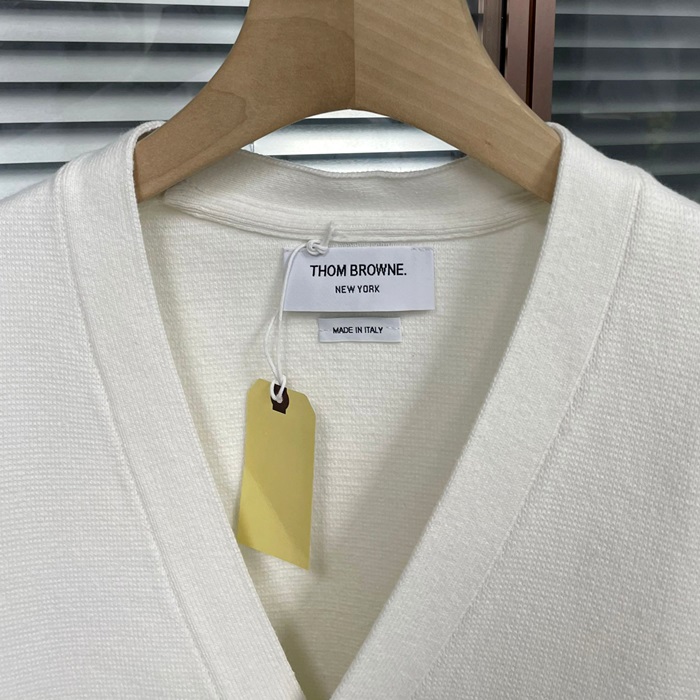トムブラウン メンズ Vネック ホワイト カーディガン - White  - thom0609x