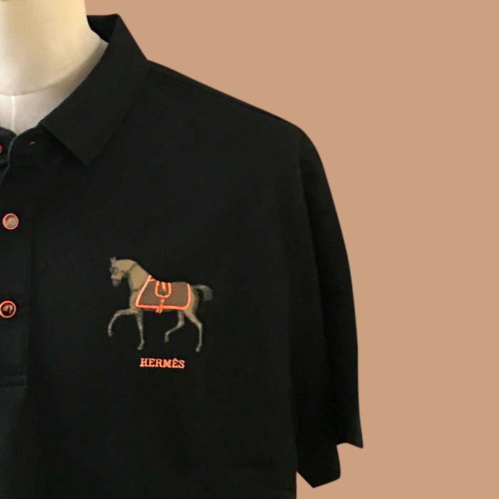 エルメス メンズ ホワイト/ブラック ポロ 半袖Tシャツ - White