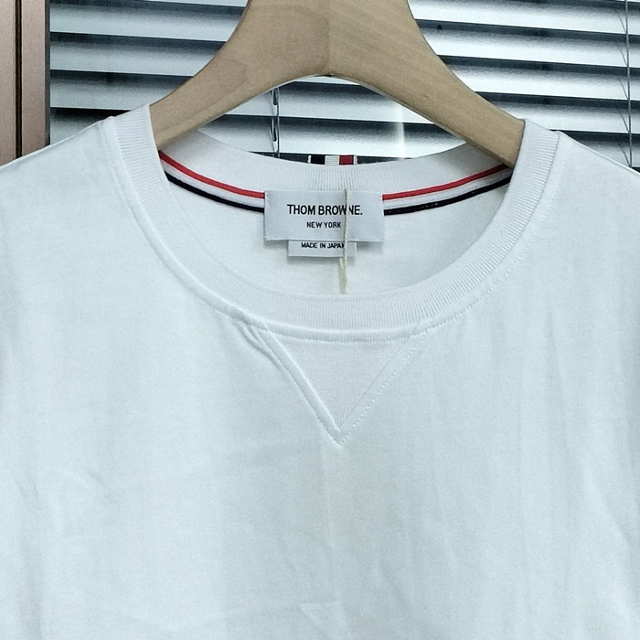 トムブラウン メンズ ホワイト クルーネック 半袖Tシャツ - White  - thom01555x