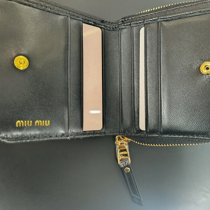 - ミュウミュウレザー レディース 二つ折り財布 MIUW0001,ブラック