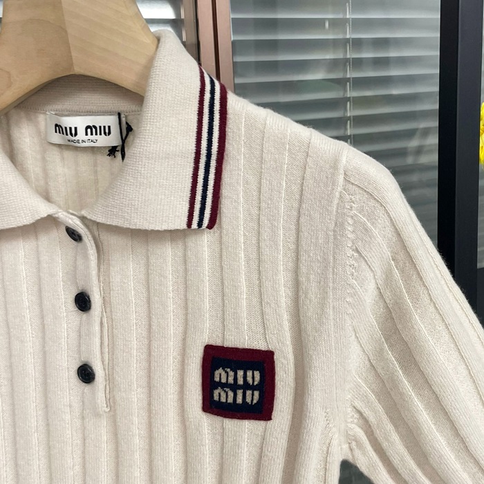 ミュウミュウ レディース アイボリー 半袖Tシャツ -  Ladys Ivory Polo  - muc234x