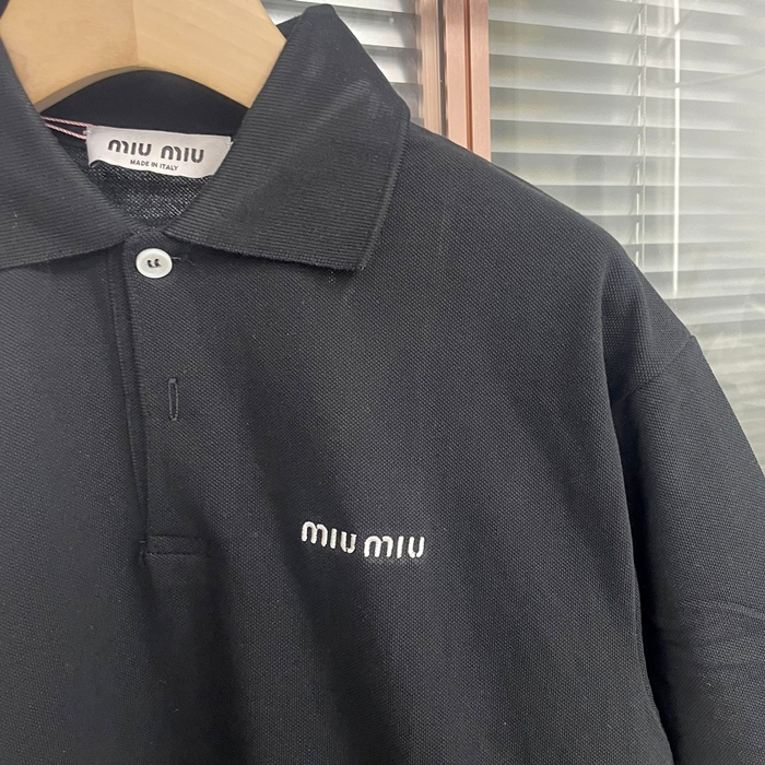 ミュウミュウ ユニセックス ブラック 半袖 ポロ シャツ -  - mic447x