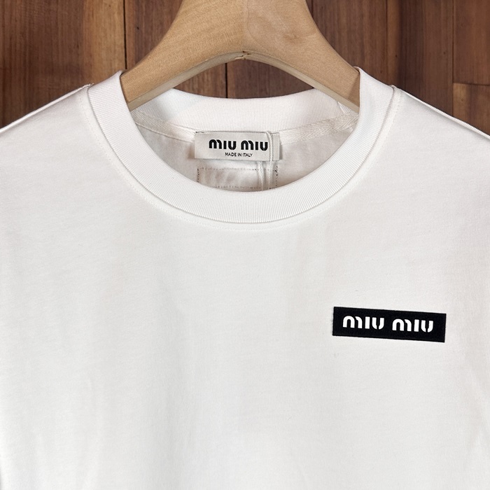 ミュウミュウ ユニセックス ホワイト 半袖 シャツ - vory - mic420x