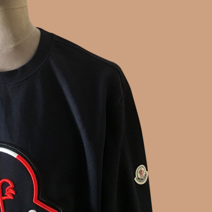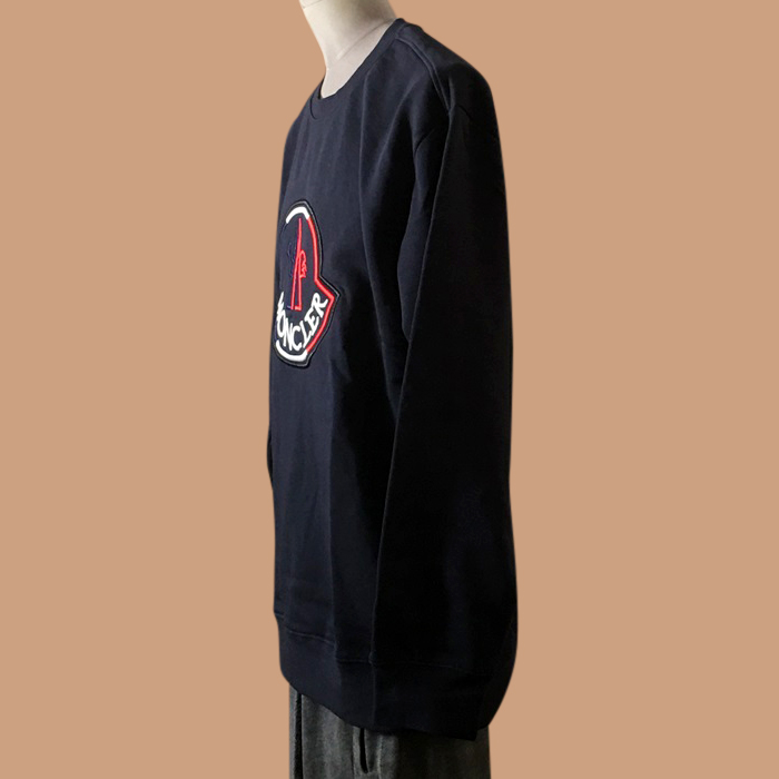 モンクレール メンズ ネイビー クルーネック 長袖Tシャツ -