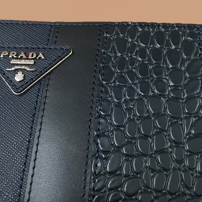 28cm - プラダ メンズレザークラッチバッグ,28cm,PRAB0211,ネイビー