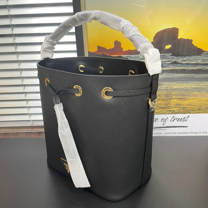 22cm - プラダ レディースレザートート バケットバッグ,22cm,PRAB0316,ブラック