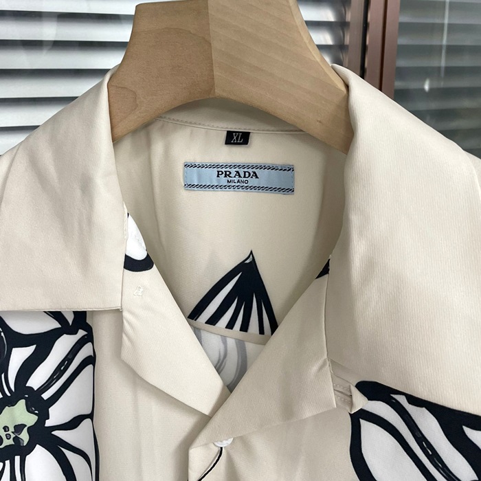 プラダ メンズ モダン アイボリー 半袖 シャツ - Ivory Short sleeved Shirts - pr02397x