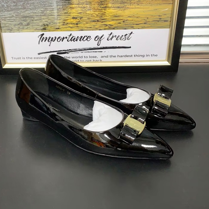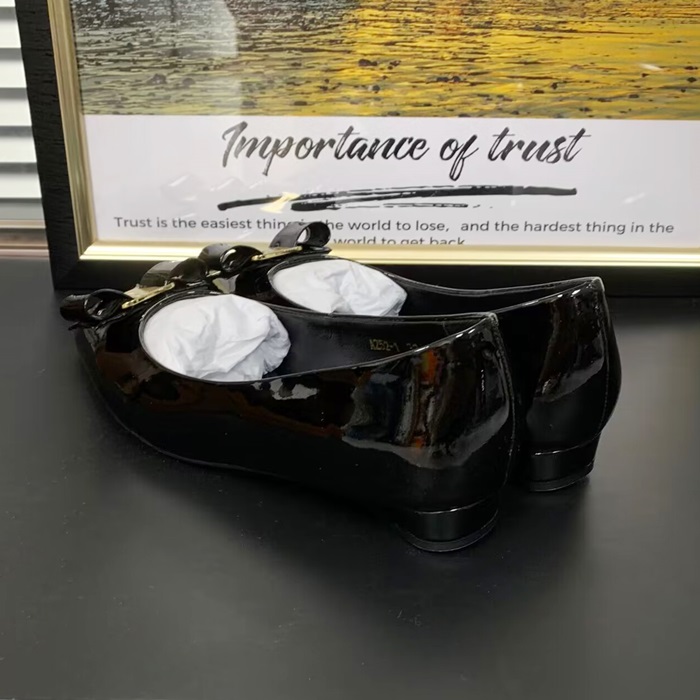 - フェラガモレディースレザーフラットFGMS0524,ブラック