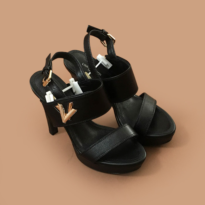 ルイヴィトン レディース クラシック メタル LOGO ハイヒール ブラック