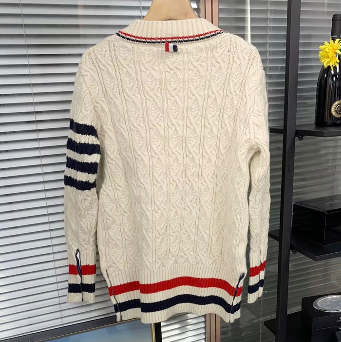 - トムブラウンメンズ クラシック Vネック ウール カーディガン Thom0499xアイボリー