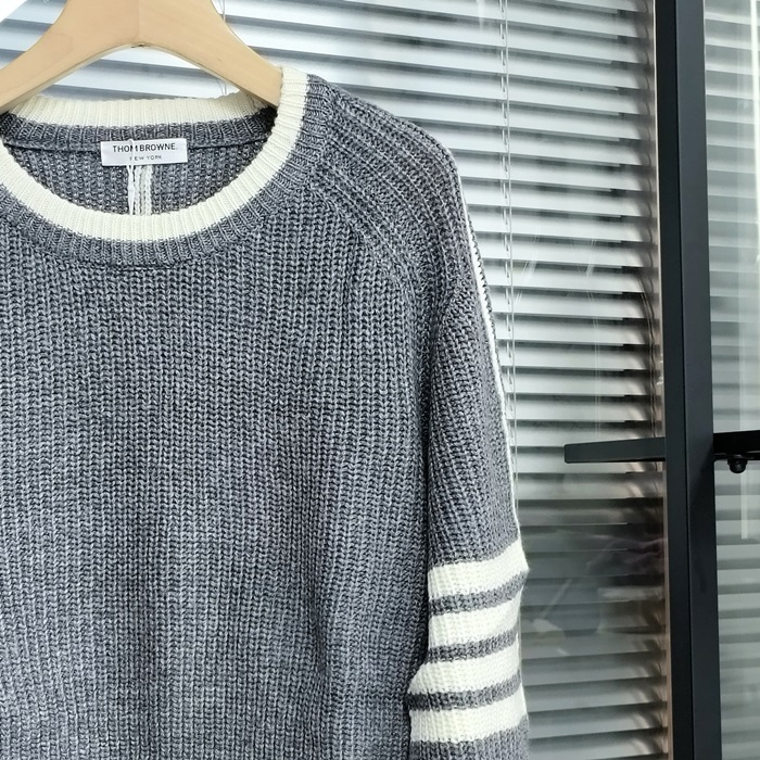 - トムブラウンメンズ ストラップ クルーネック ウール セーター Thom01083x.Sizeグレー
