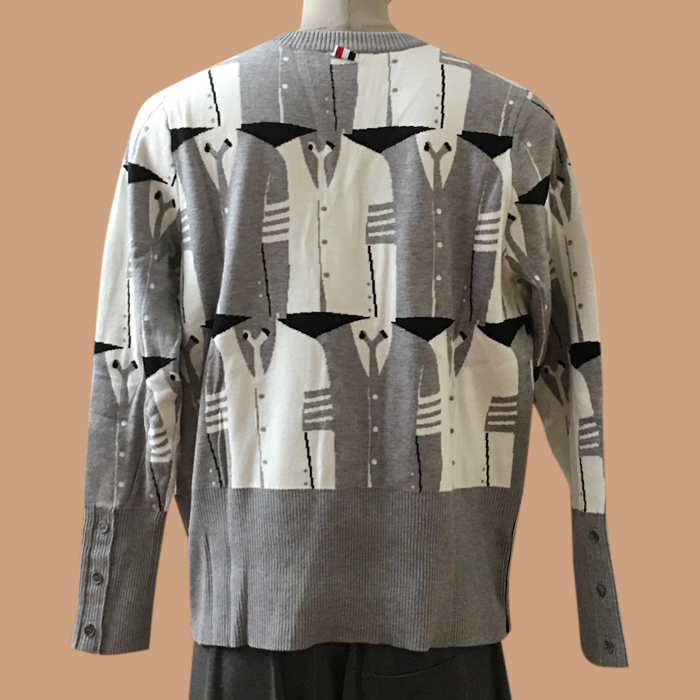 トムブラウン メンズ グレー クルーネック ニット - Gray Knit - thom0646x