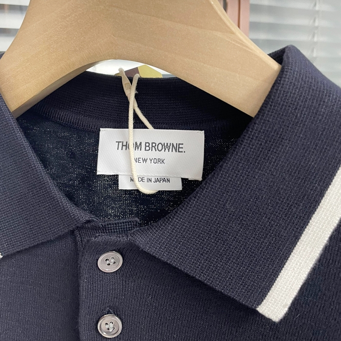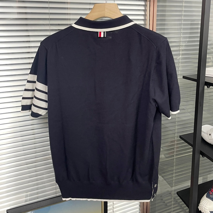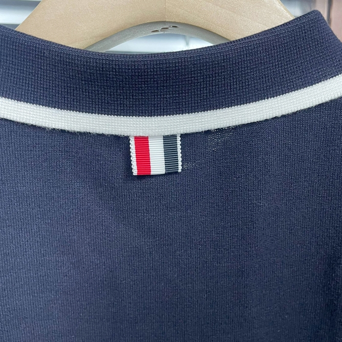 トムブラウン メンズ ネイビー ポロ 半袖Tシャツ - - th55x