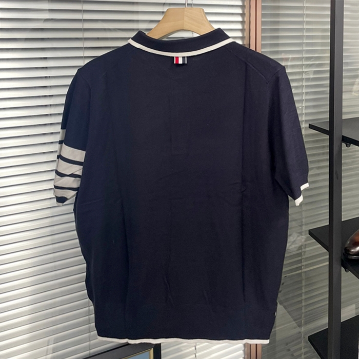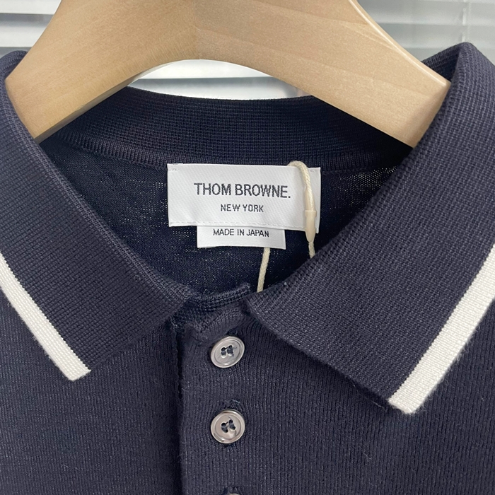 トムブラウン メンズ ネイビー ポロ 半袖Tシャツ - - th55x