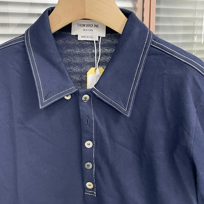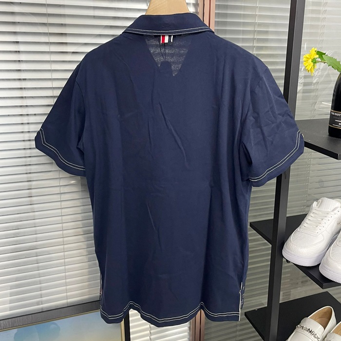 トムブラウン メンズ ネイビー ポロ 半袖Tシャツ - - thc391x