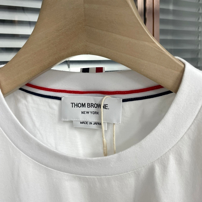 トムブラウン メンズ クルーネック ホワイト 半袖Tシャツ - White  - th50x