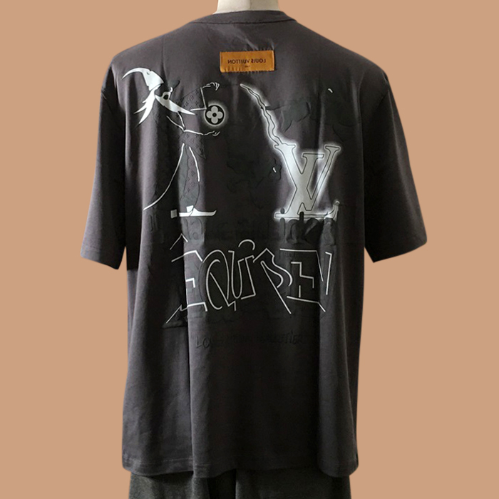 ルイヴィトン ユニセックス クルーネック ダークブラウン 半袖Tシャツ -