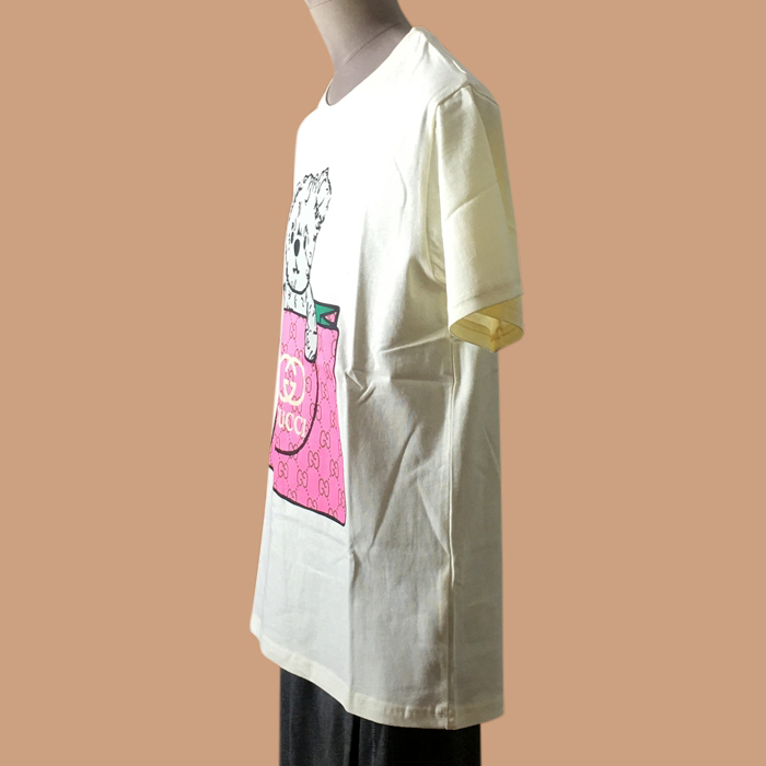 グッチ ユニセックス クルーネック アイボリー 半袖Tシャツ -