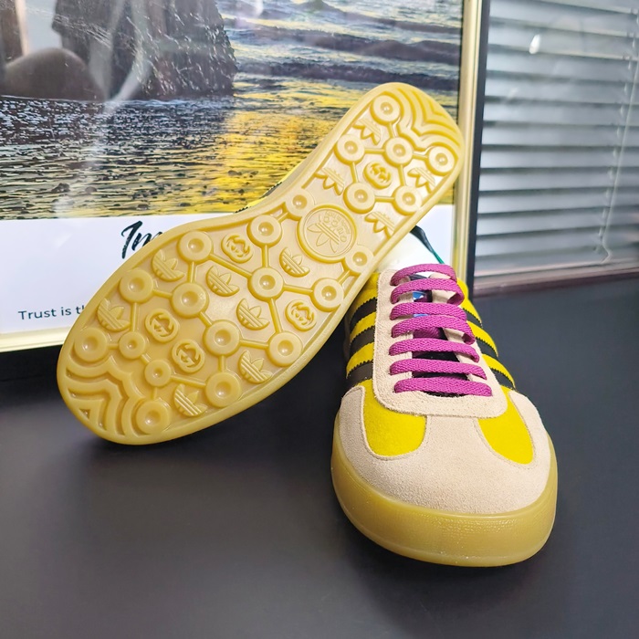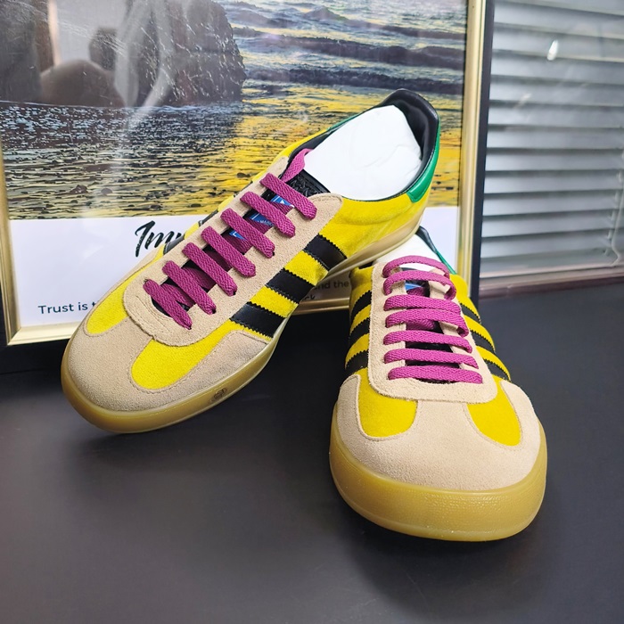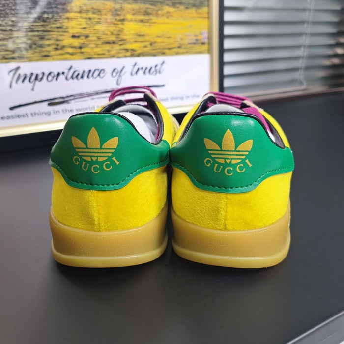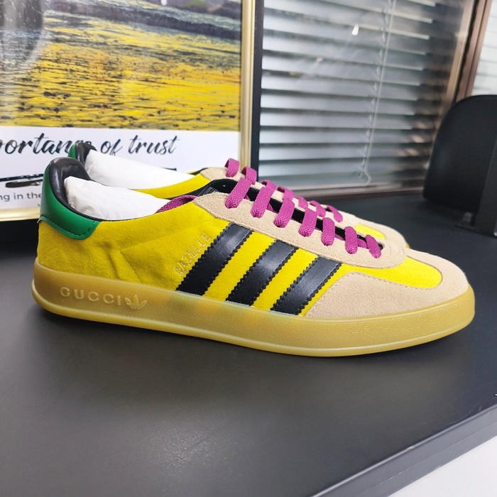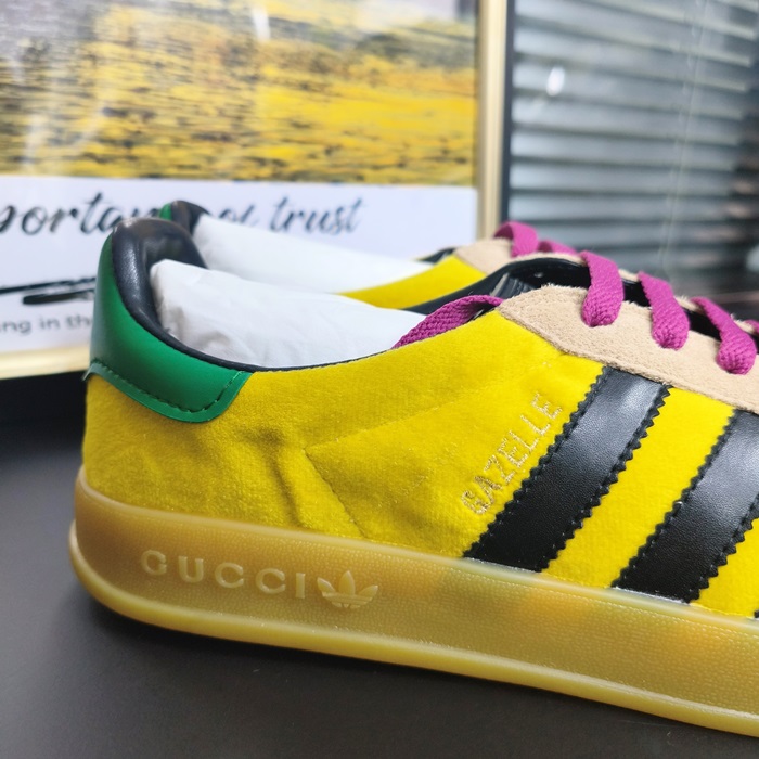 グッチ X アディダス ユニセックス ガゼル ベルベット イエロー/グリーン/ブラック ロー タップ スニーカー  -Yellow  - gu1000x