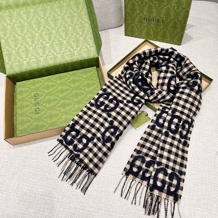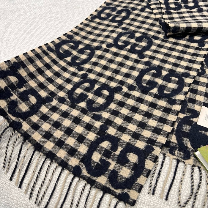グッチレディースネイビーマフラーc2350