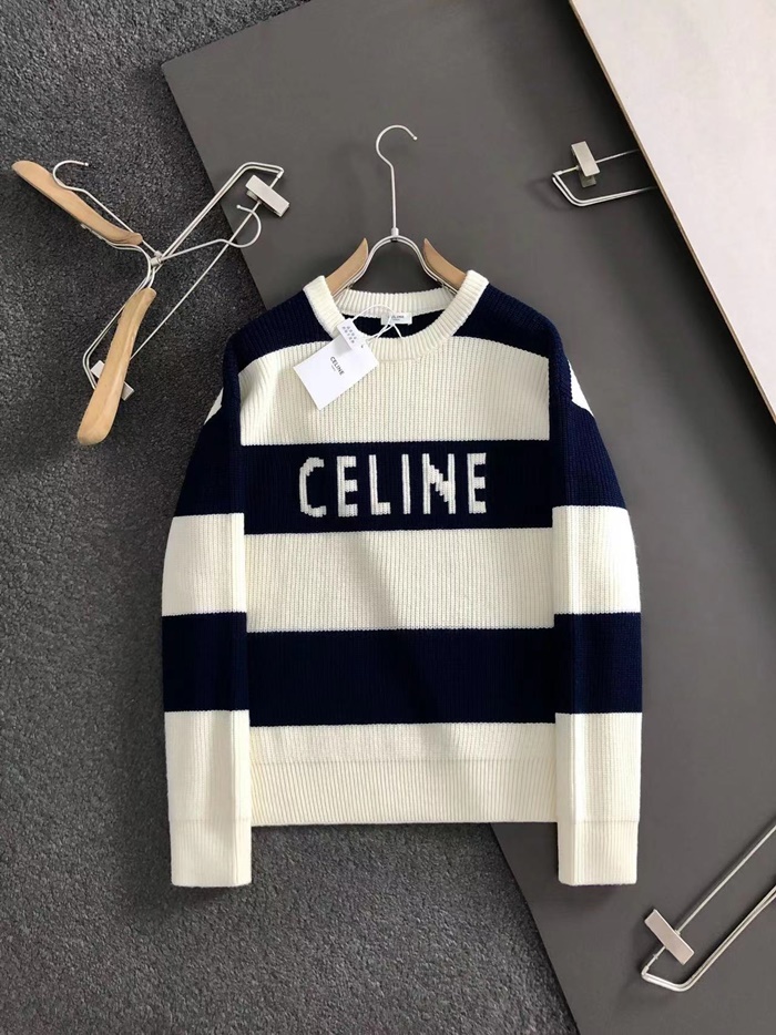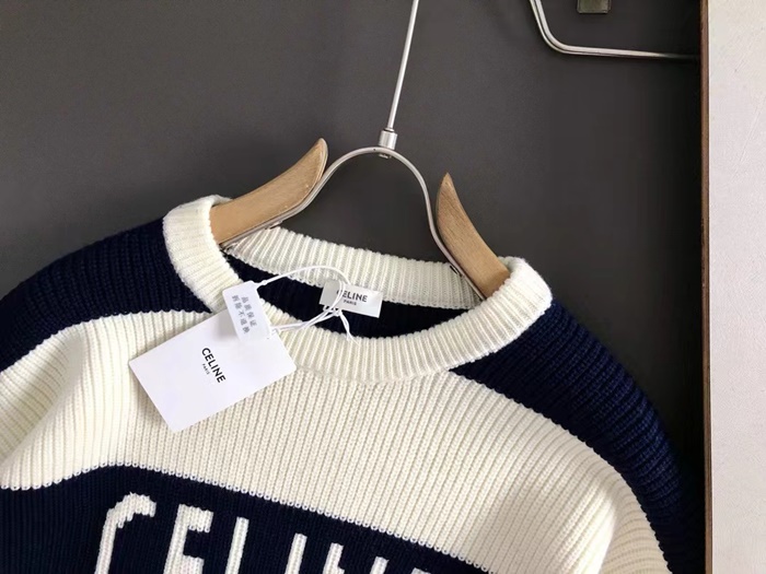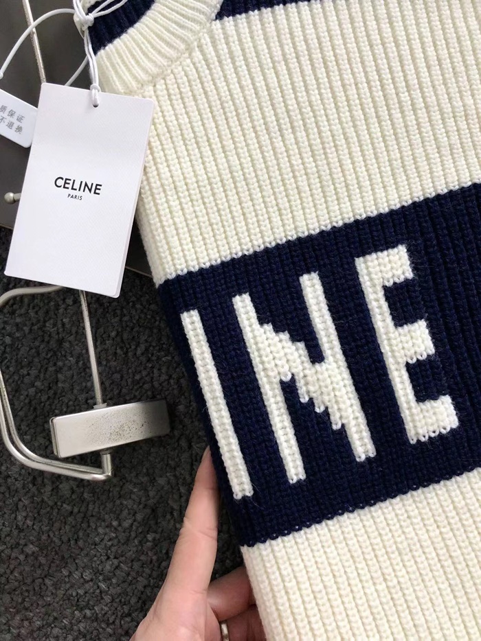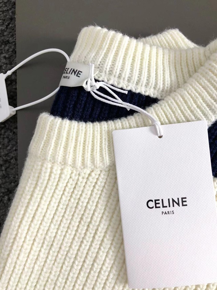 セリーヌメンズクルーネックホワイトニットc2075