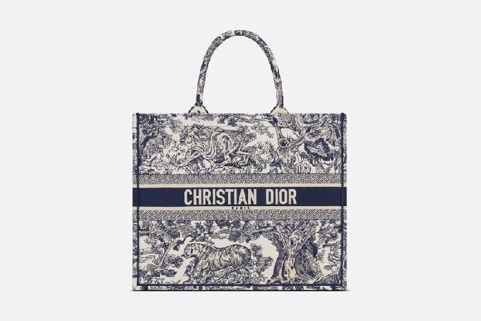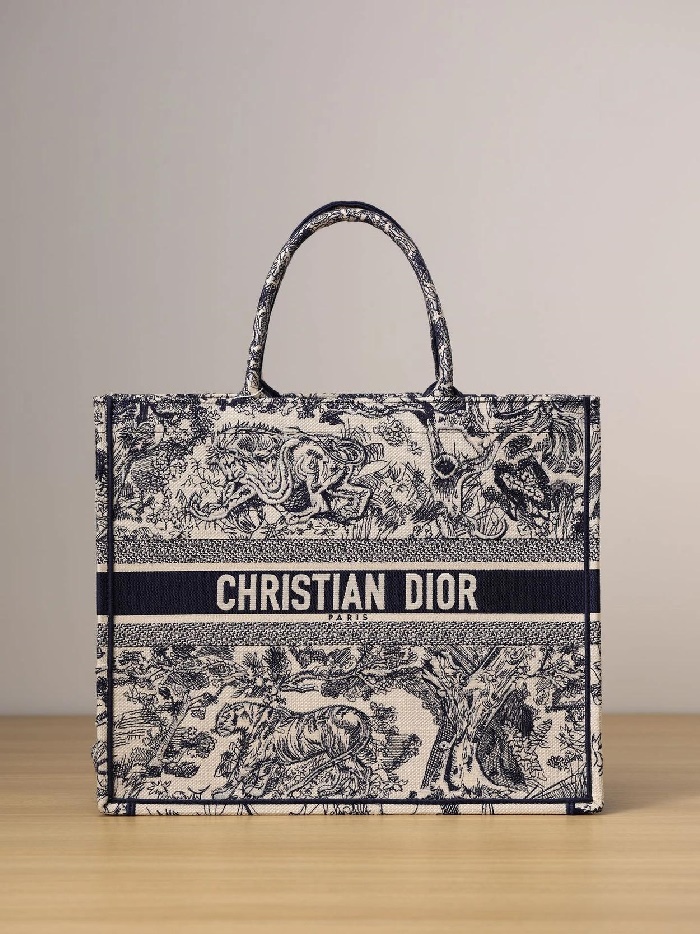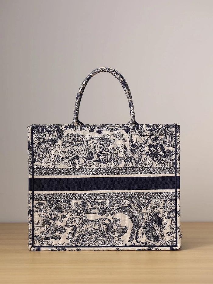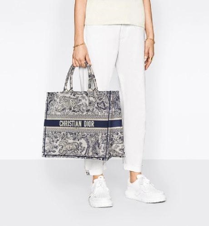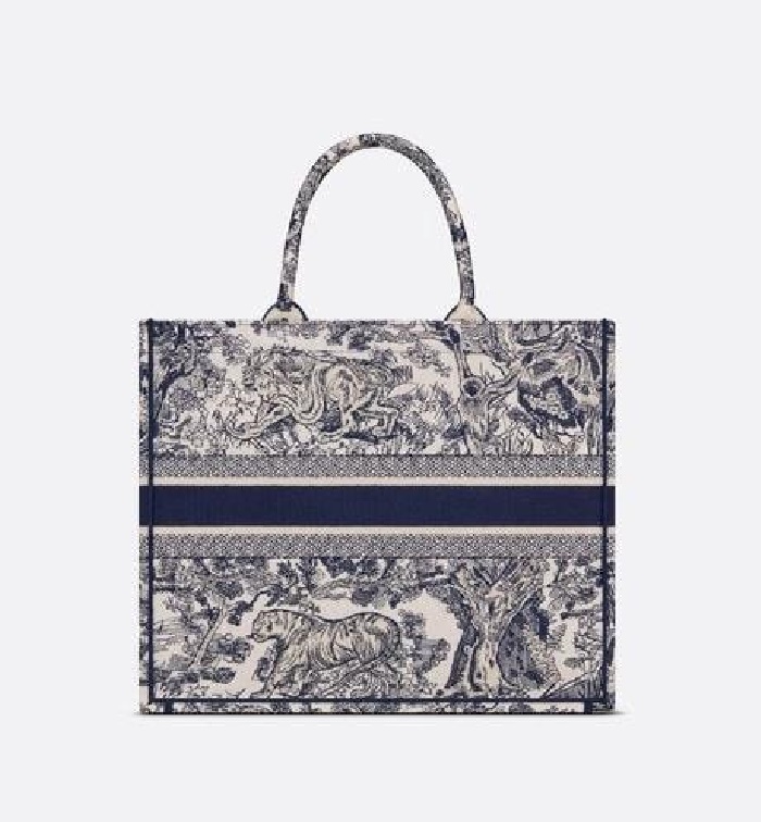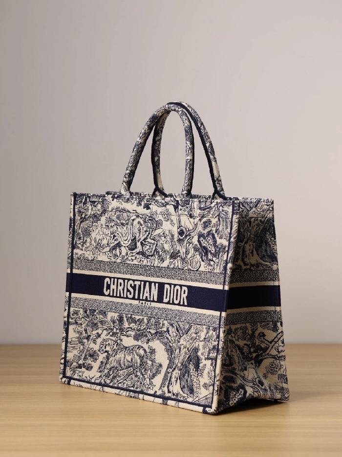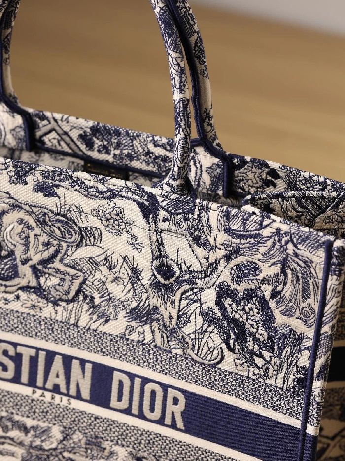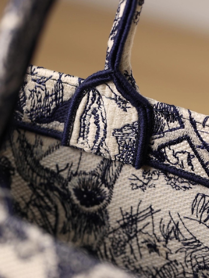 ディオールレディースブルー刺繍ブックトートバッグラージi2592