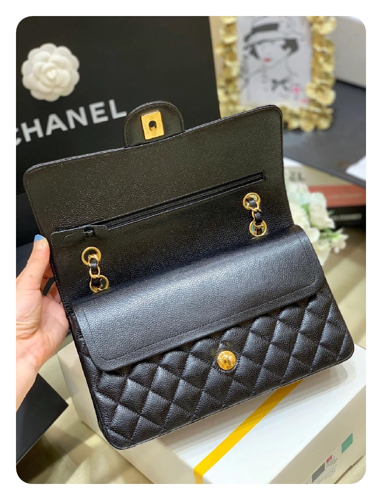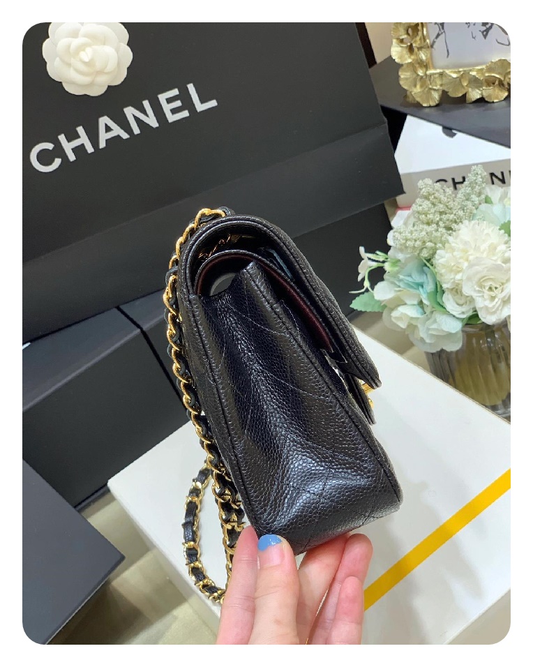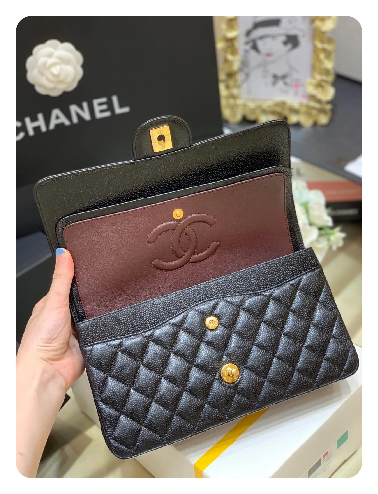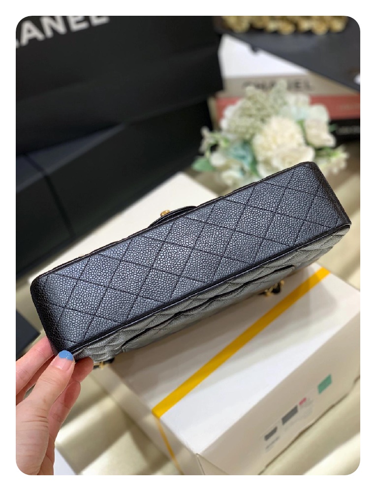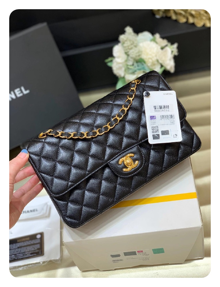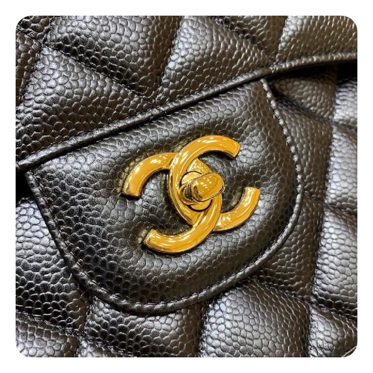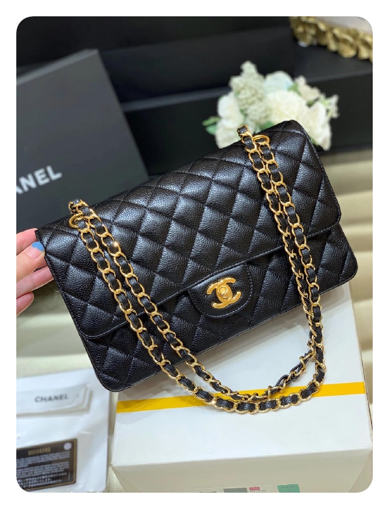 シャネルクラシックカーフィアラージブラックゴールドh2657
