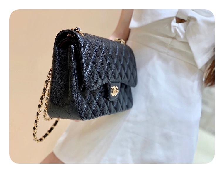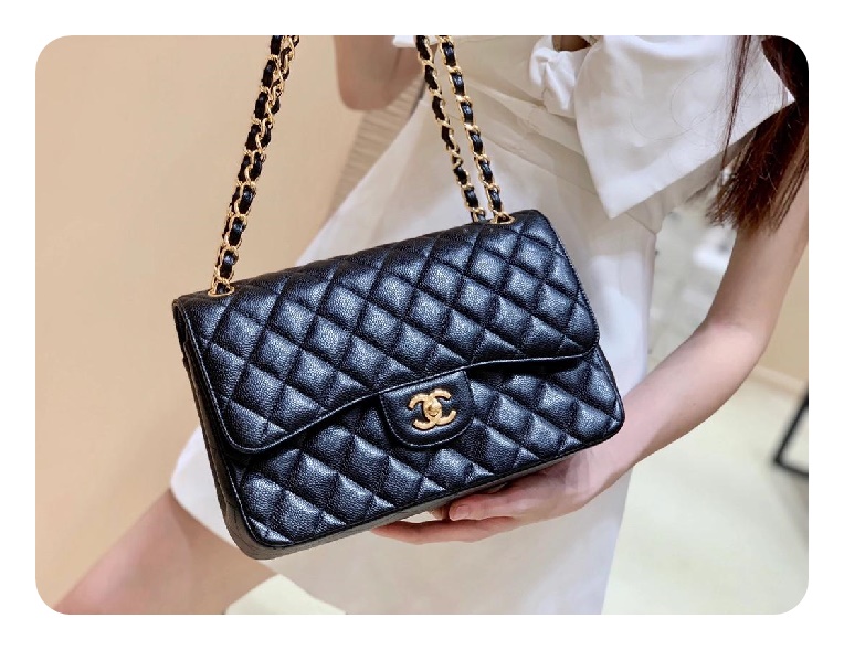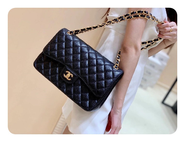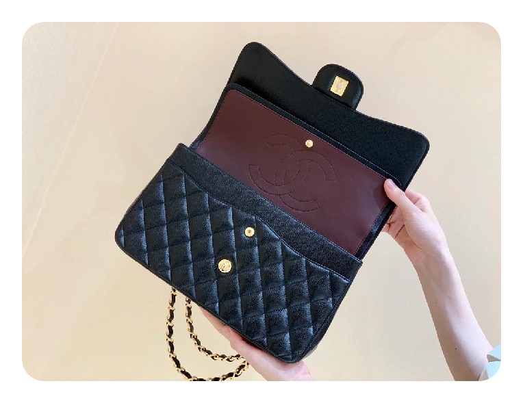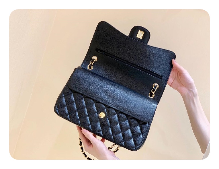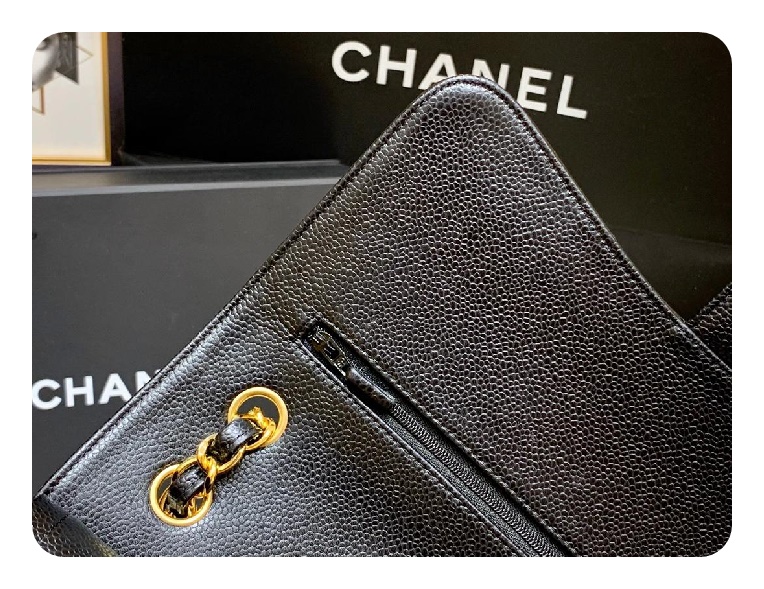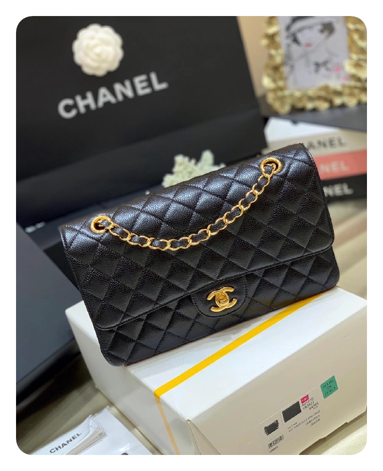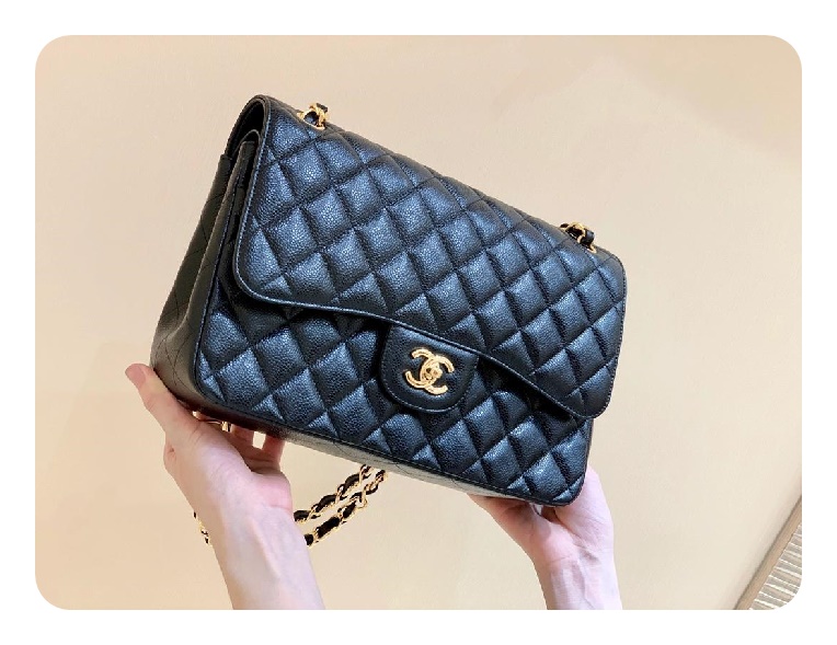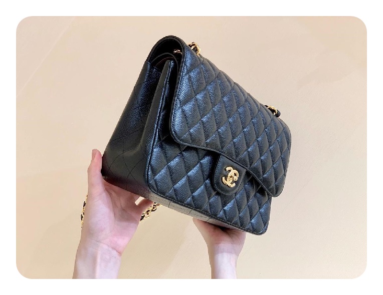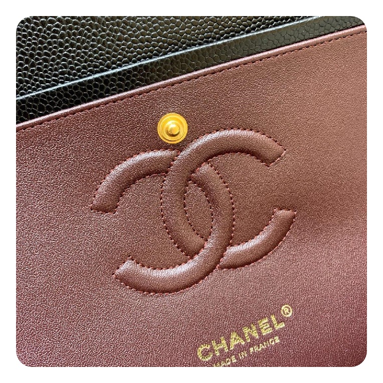 シャネルクラシックカーフィアラージブラックゴールドh2657