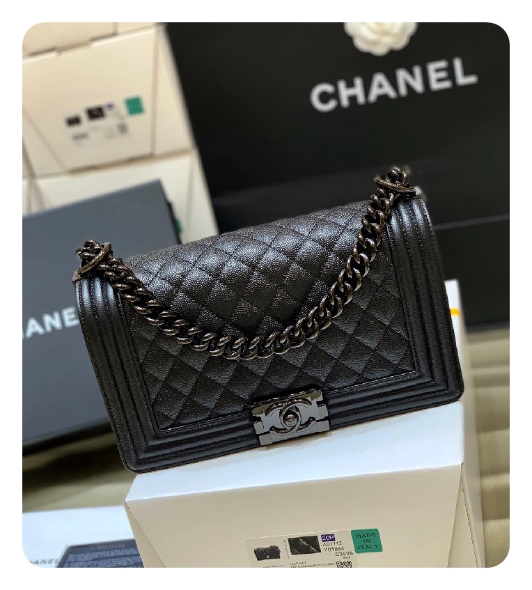 シャネルボーイバッグミディアムカーフィアブラックh2669