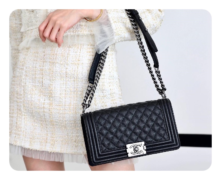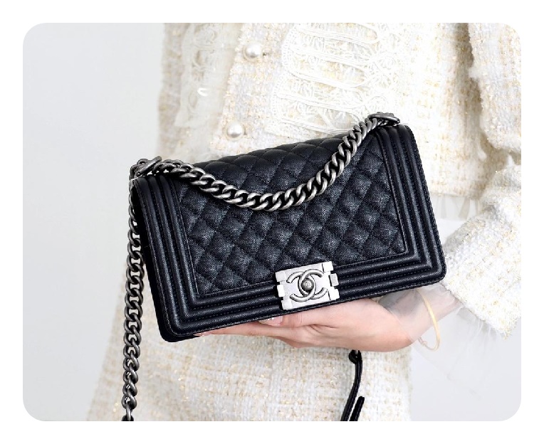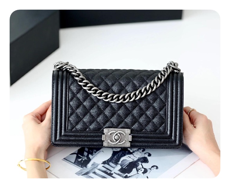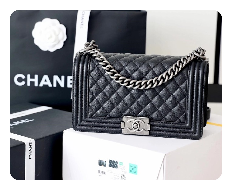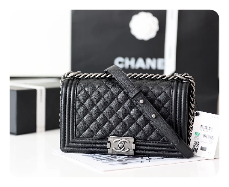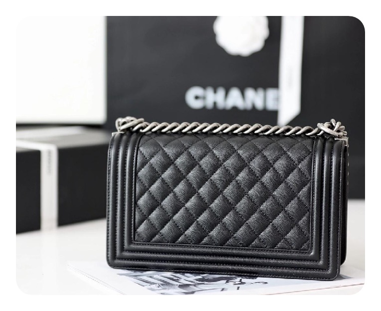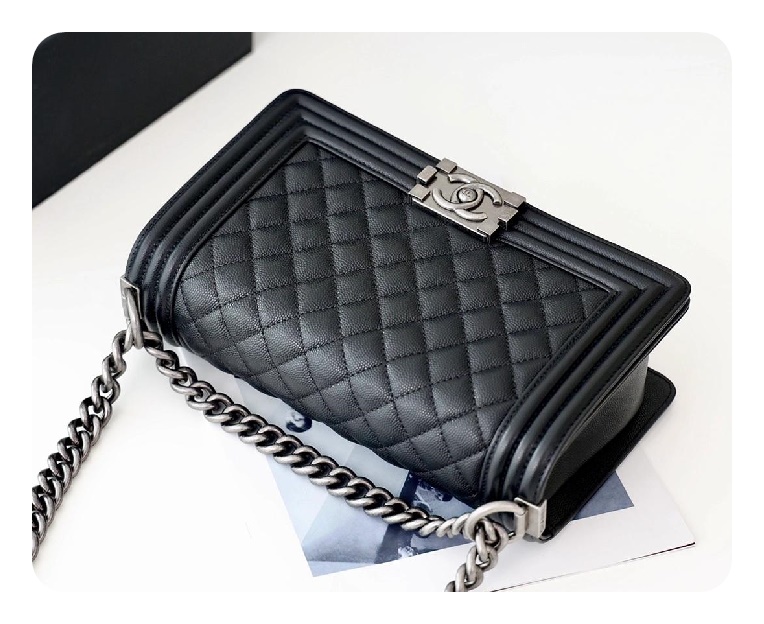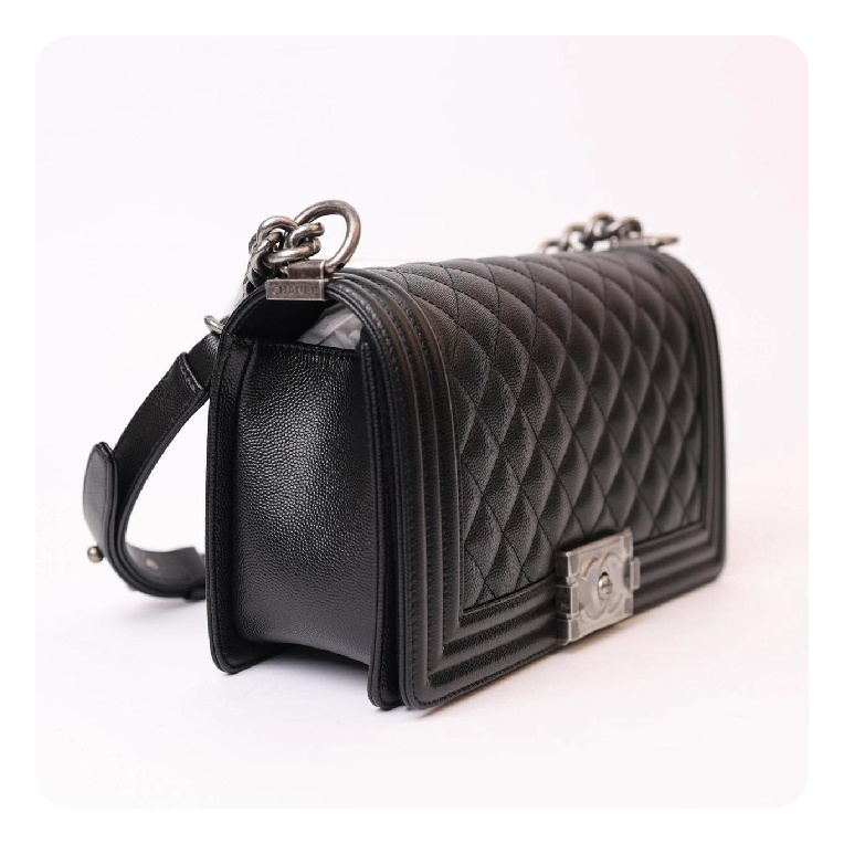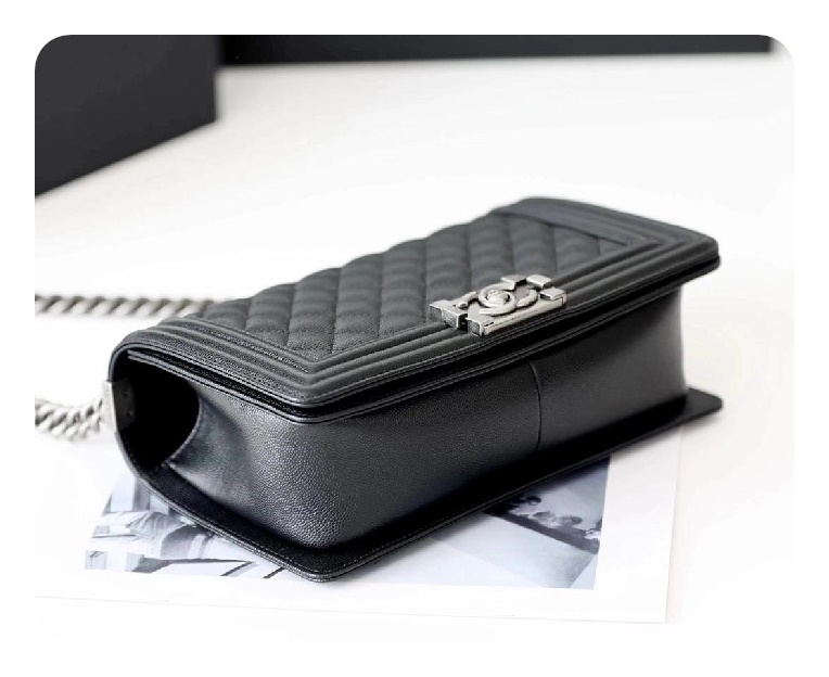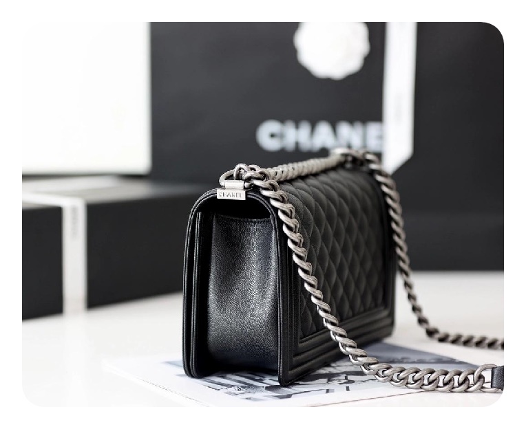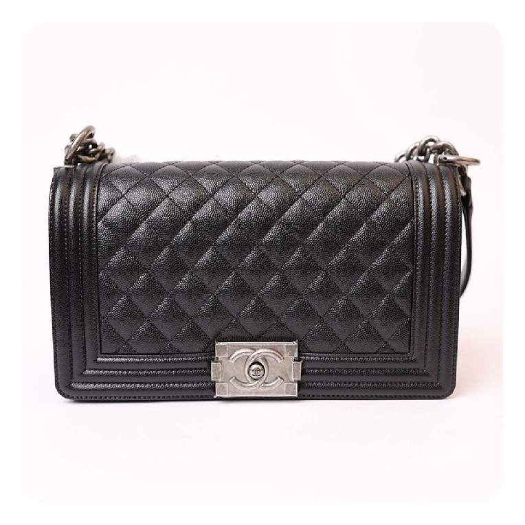 シャネルボーイバッグミディアムカーフィアブラックヴィンテージh2671