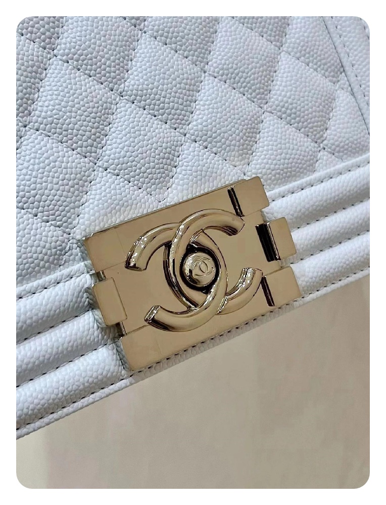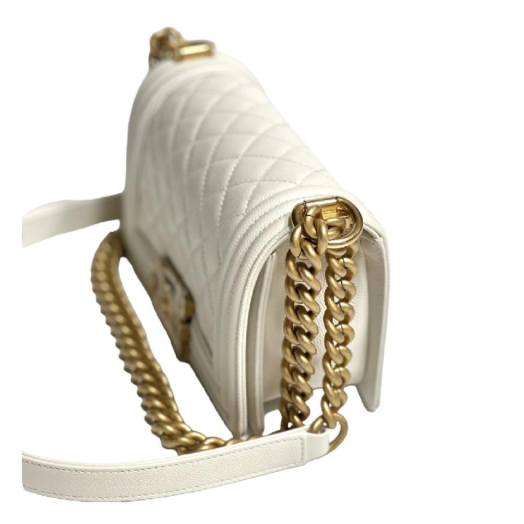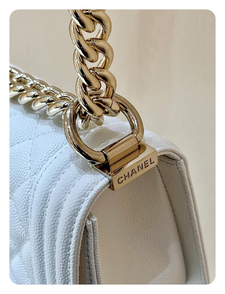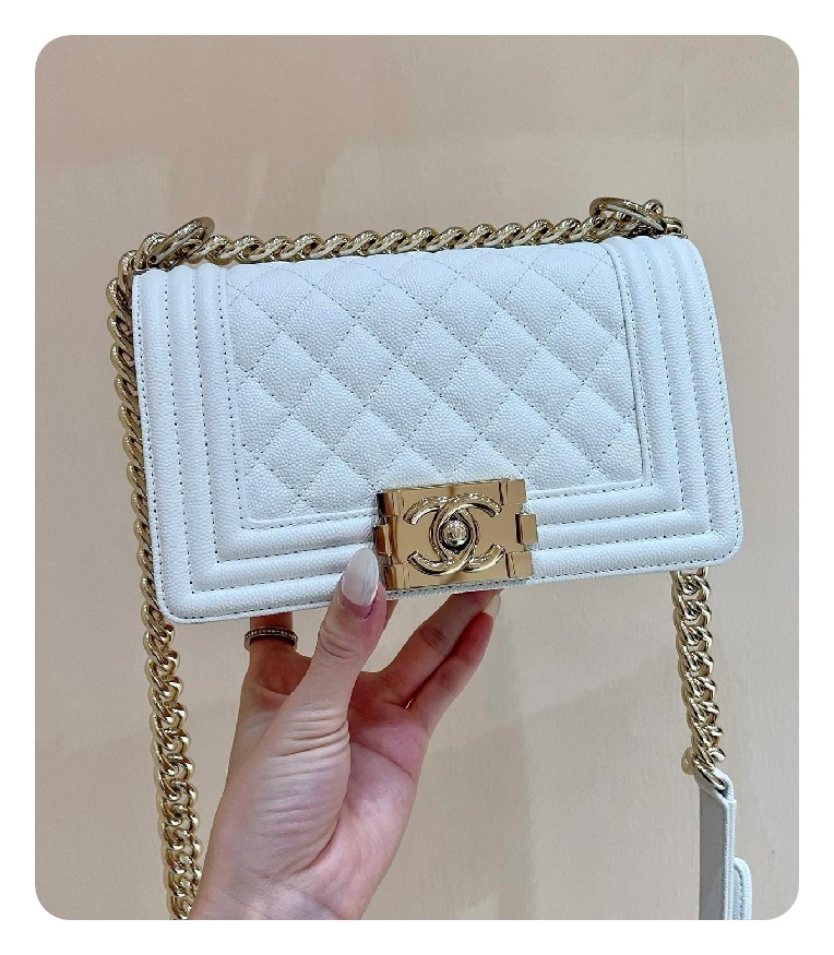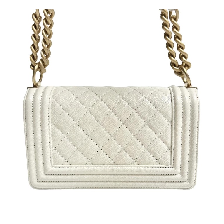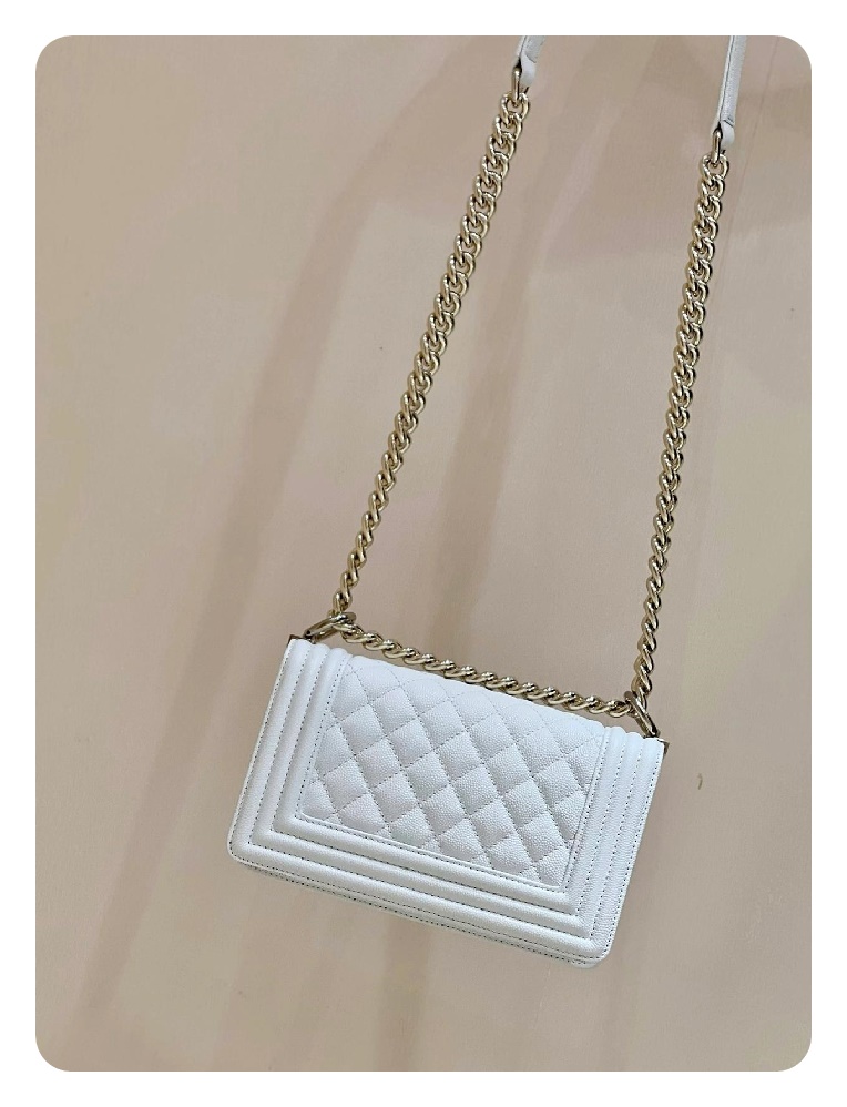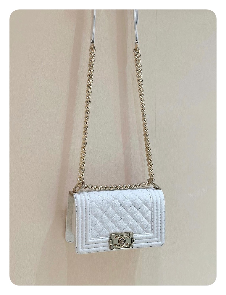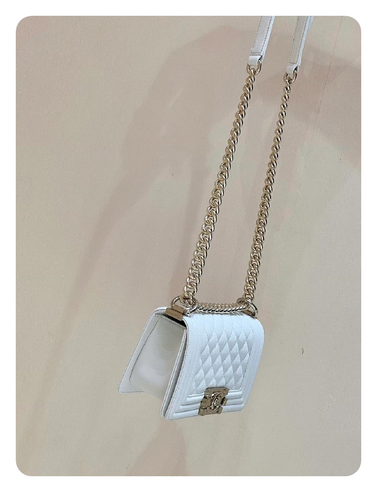 シャネルボーイバッグスモールカーフィアホワイトゴールドh2676