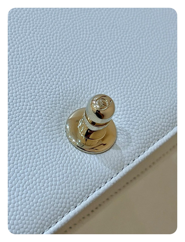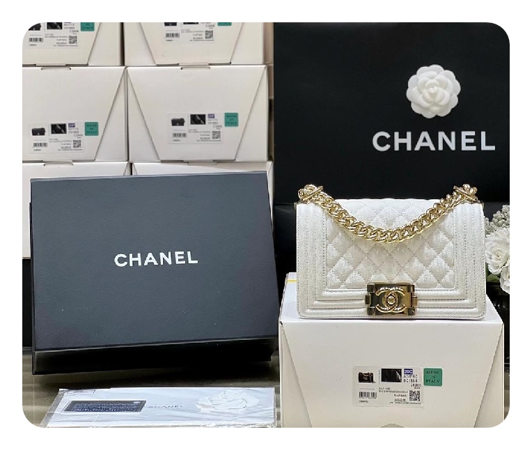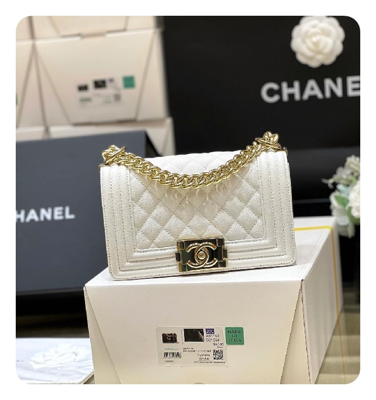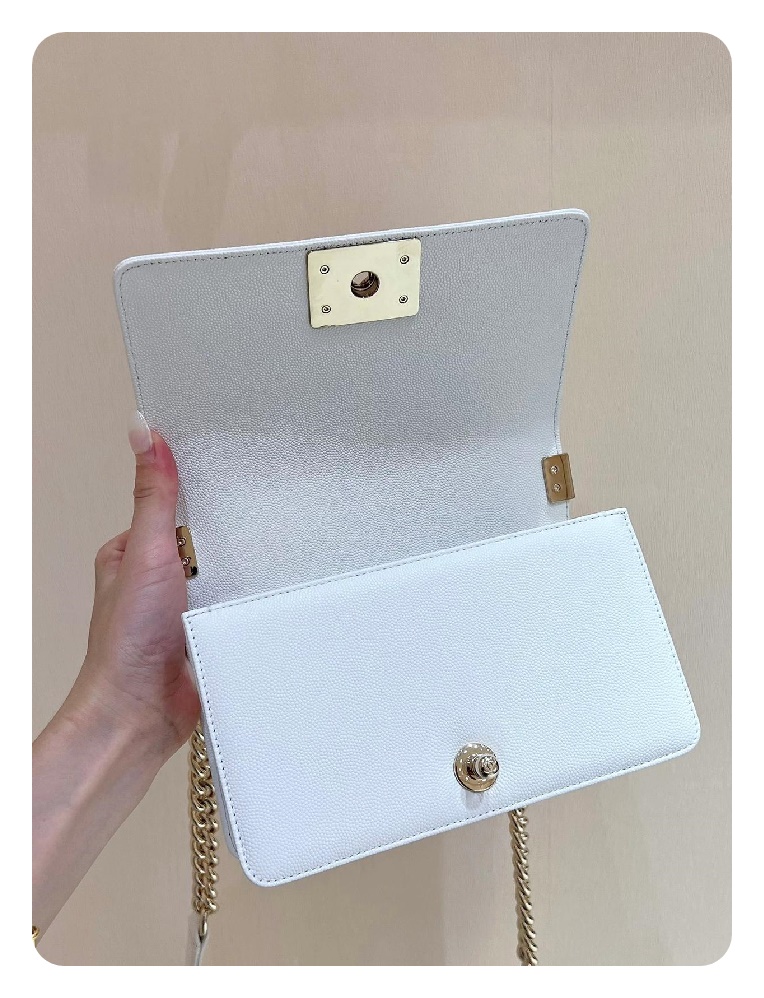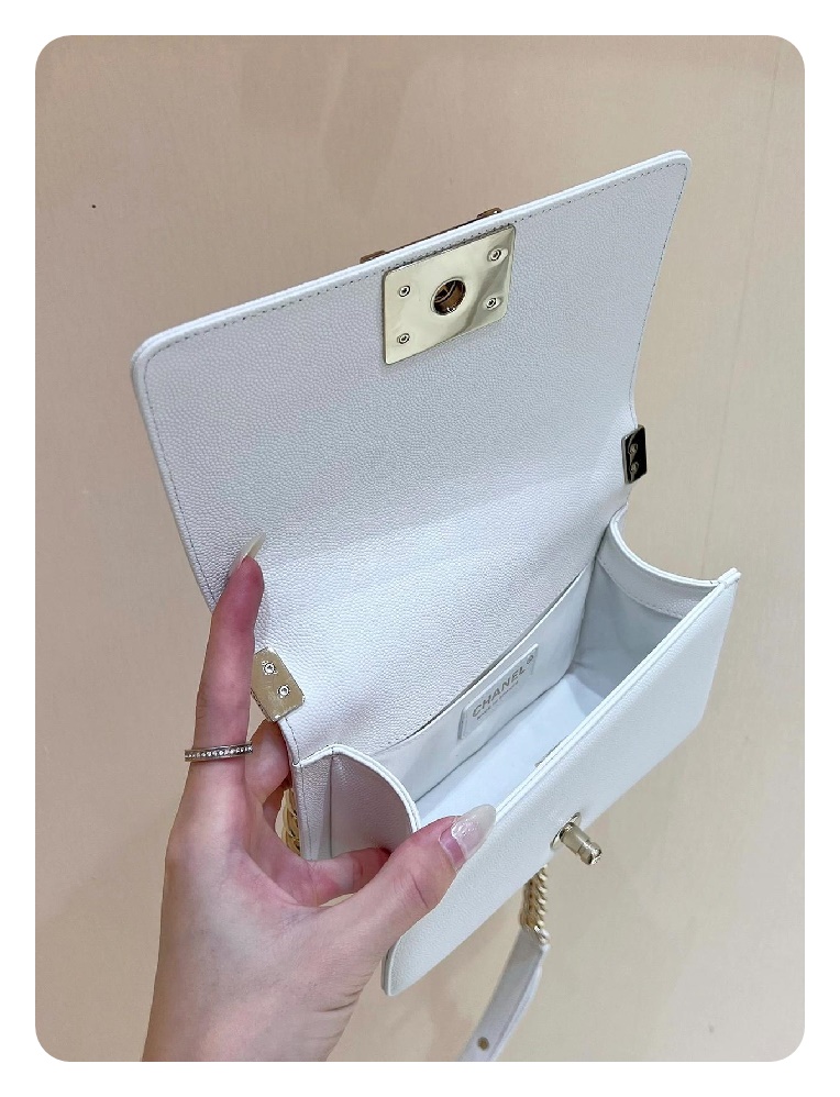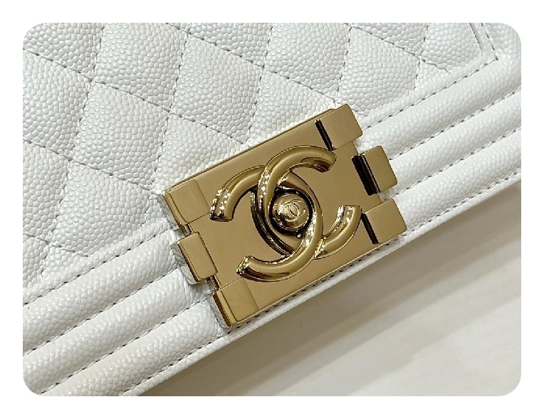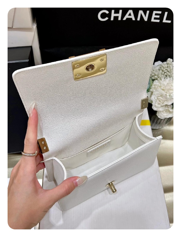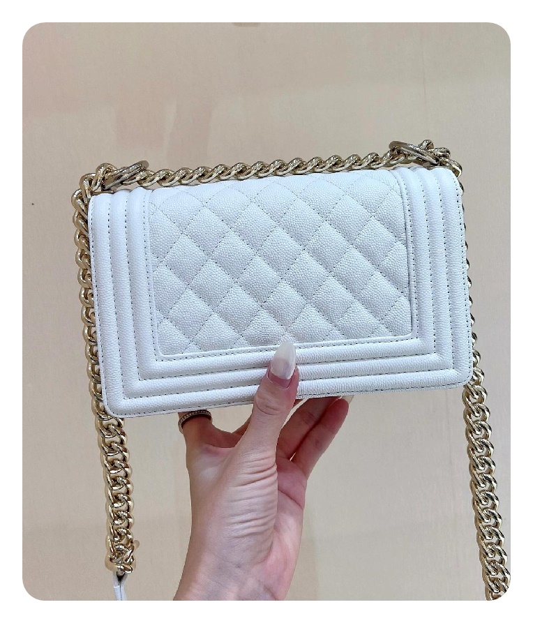シャネルボーイバッグスモールカーフィアホワイトゴールドh2676