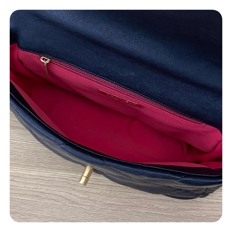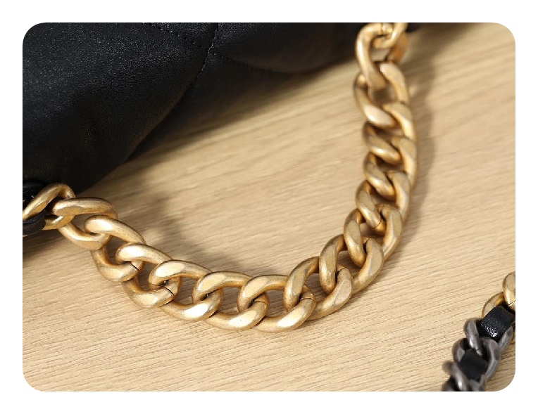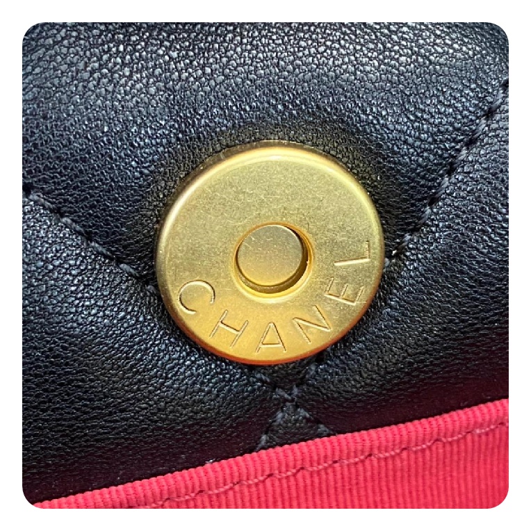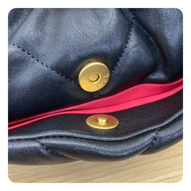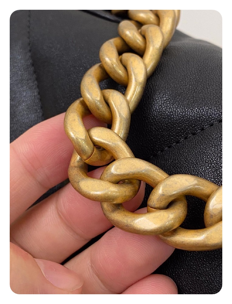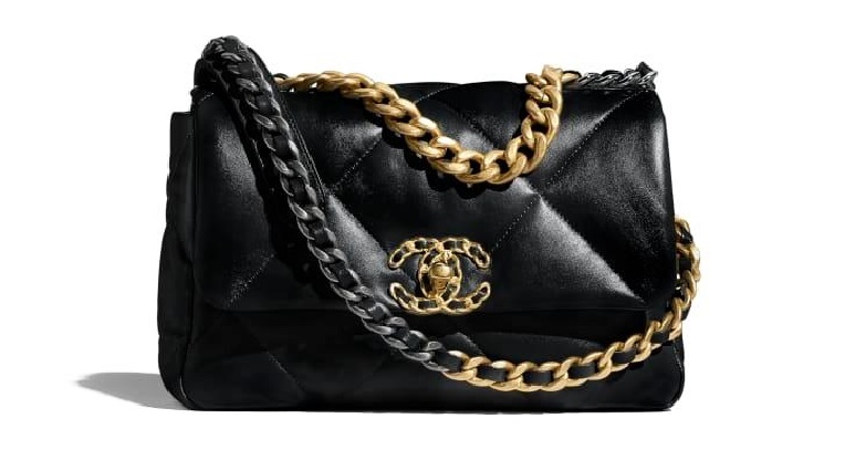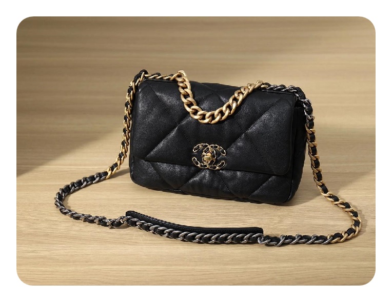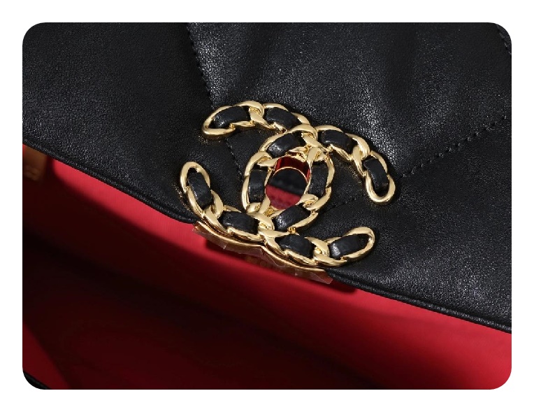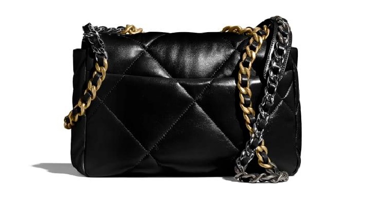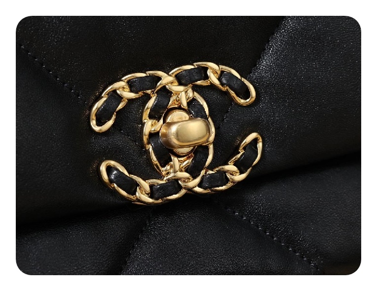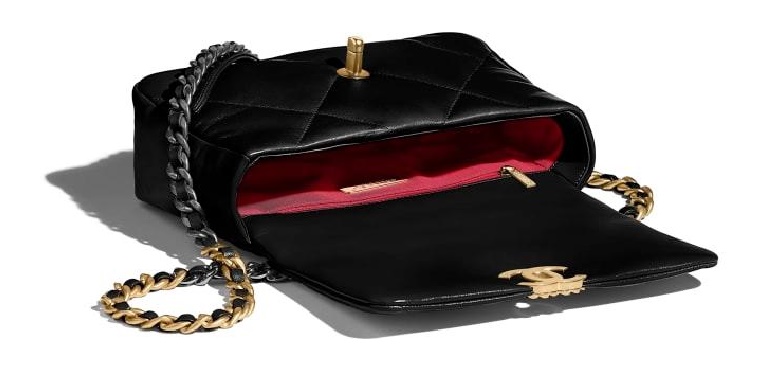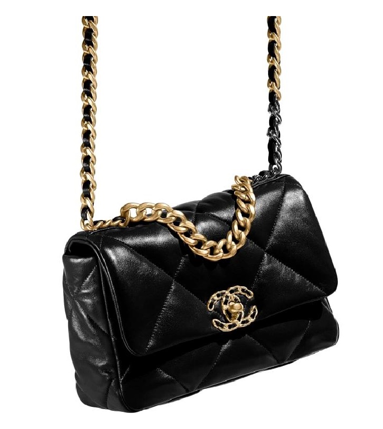 シャネル19フリップバッグゴートスキンミディアムブラックゴールドe19h2681